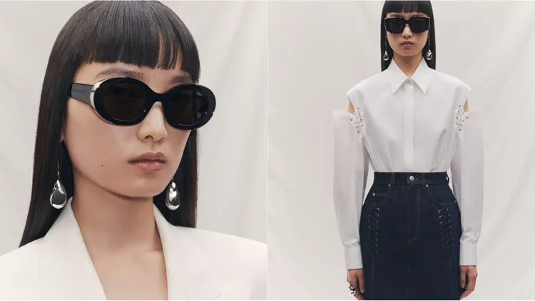 Τα μεταλλικά στοιχεία στις γωνίες των acetate μοντέλων εμπνέονται από τη signature μεταλλική λαβή grip που συναντάμε στα δερμάτινα αξεσουάρ του brand και έρχονται να ενισχύσουν τη θηλυκή σιλουέτα. Οι μάσκες ηλίου είναι στιλιζαρισμένες, με τμήματα φακών να εφαρμόζονται στους βραχίονες, ενώ οι πιο στιβαρές σιλουέτες αποκαλύπτουν το λογότυπο της Alexander McQueen με χρωματιστό σμάλτο για αντίθεση.