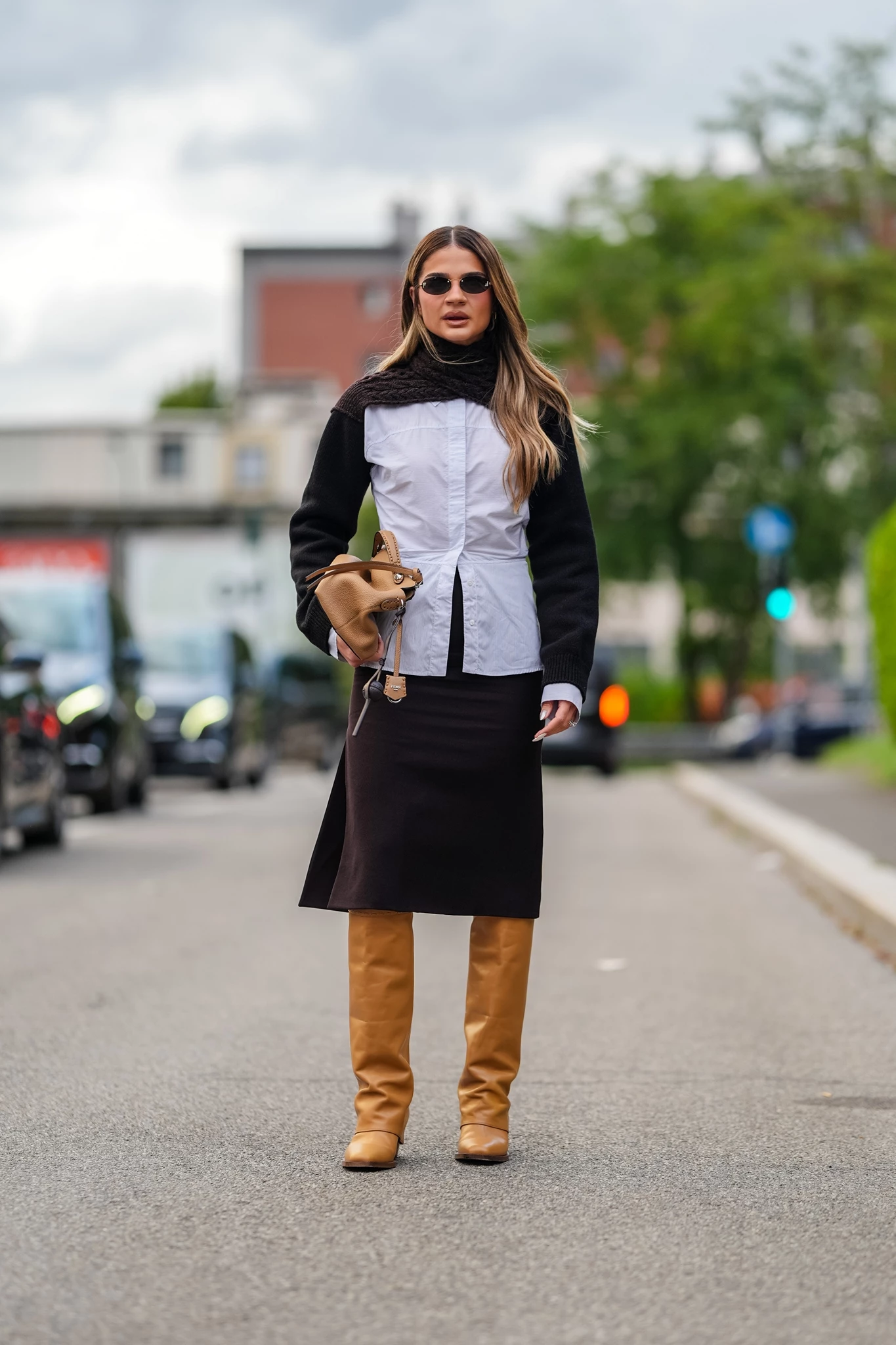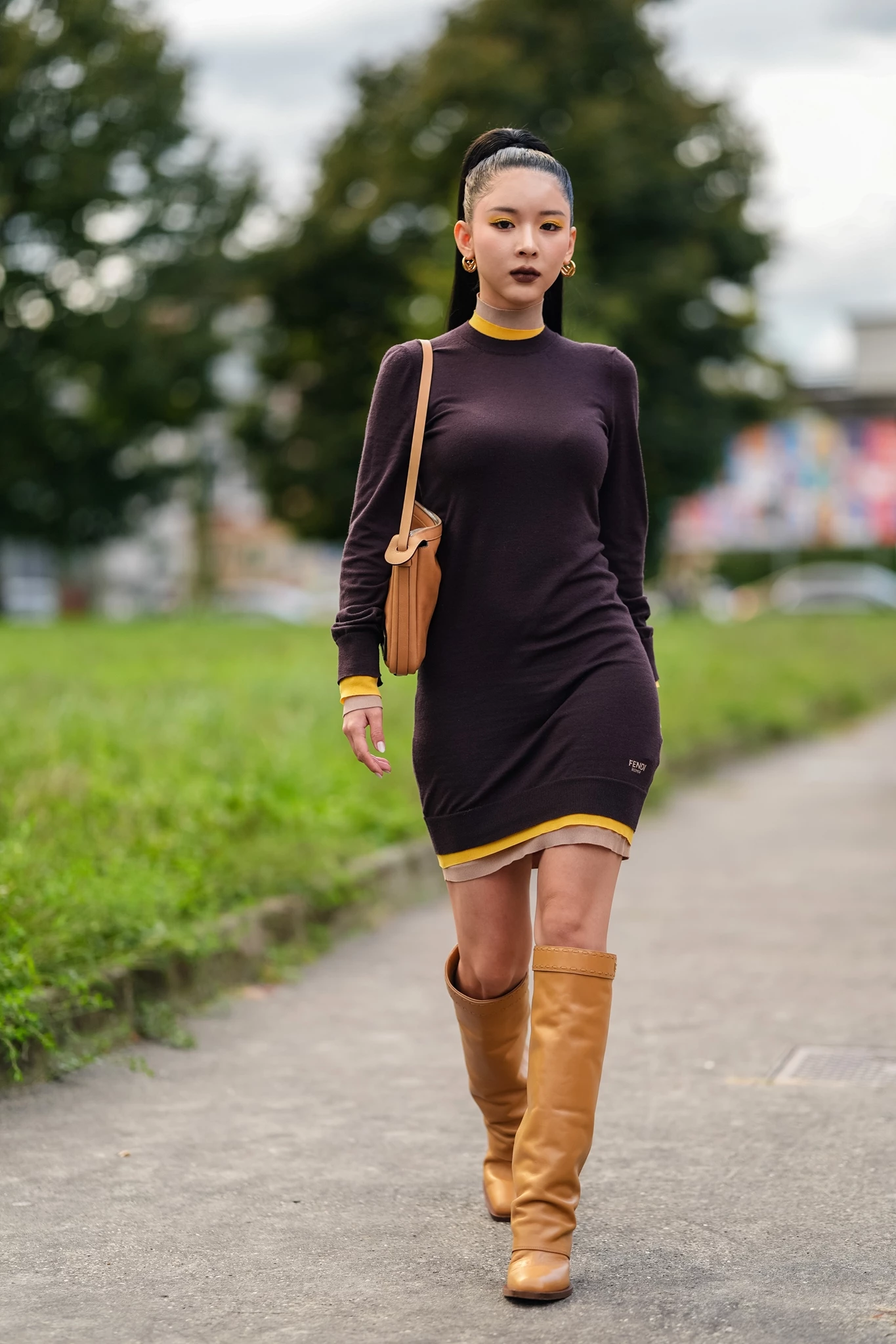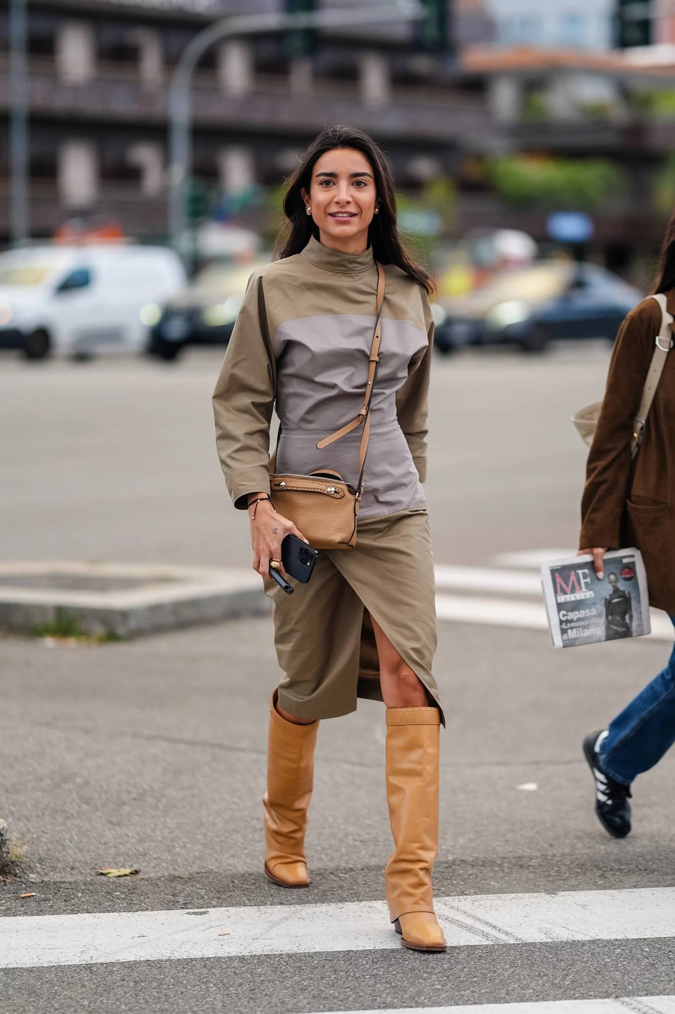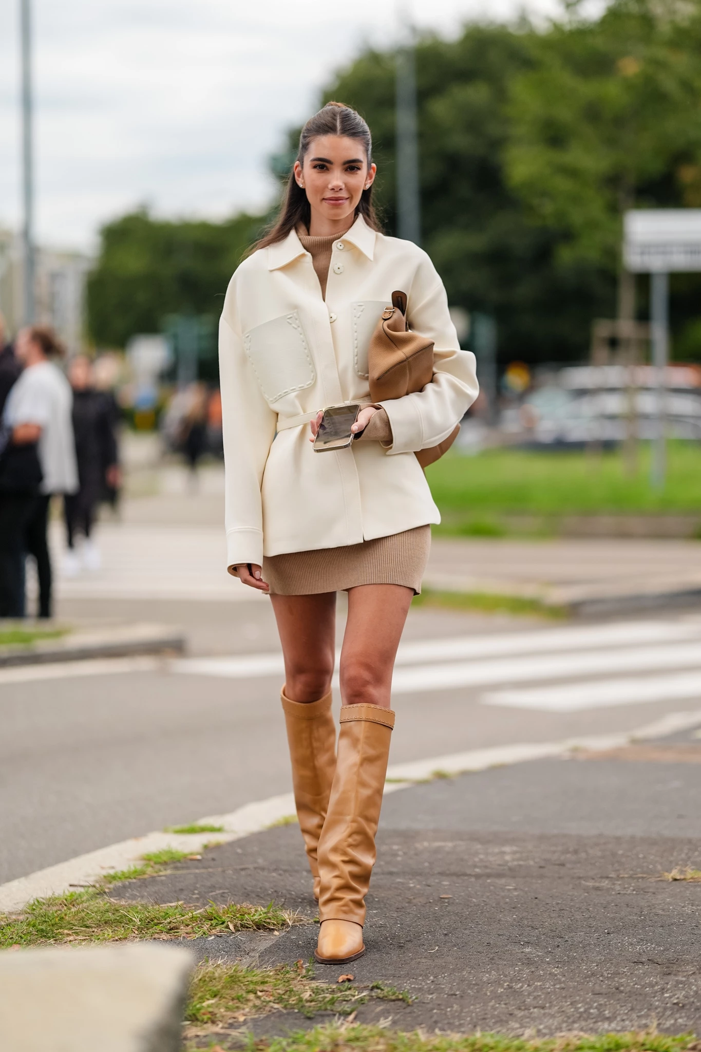 Οι light μπεζ μπότες με τακούνι, που σταματούν στο γόνατο, εμφανίστηκαν στο runway του Fendi για τη σεζόν Φθινόπωρο- Χειμώνας 2024-25 και η πλειοψηφία των guests στο show του οίκου για τη συλλογή Άνοιξη - Καλοκαίρι 2025 τις επέλεξε για να ολοκληρώσει τα looks της. Τις μπεζ μπότες Fendi είδαμε να τις συνδυάζουν με μίνι πλεκτά φορέματα και τζάκετ, με μίντι φούστες σε ίσια γραμμή ή δερμάτινες φούστες σε Α γραμμή, με wrap φορέματα, με sheer skirt και πουλόβερ και με skirt suit σε μπορντό. Και ναι, μπορεί αυτό ήταν ένα show του Fendi και άρα οι καλεσμένες για να τιμήσουν το brand επέλεξαν κομμάτια των συλλογών του, όμως οι μπεζ μπότες έμοιαζε να έχουν κερδίσει απόλυτα την καρδιά των fashionistas. Το συγκεκριμένο ζευγάρι κυκλοφορεί και στην over-the-knee εκδοχή του, που φορέθηκε με μίνι φορέματα αλλά και μέσα από φορέματα με σκισίματα.