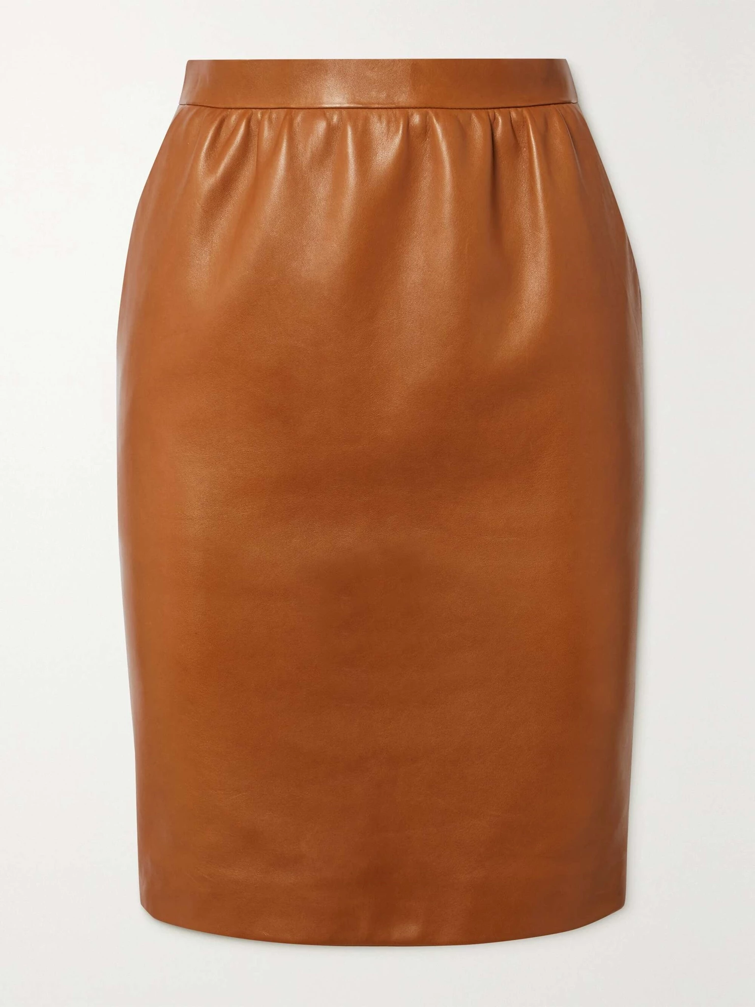 Συνεχίζοντας στο ίδιο ύφος, με δερμάτινες φούστες σε ενδιαφέρουσες αποχρώσεις, η knee-length φούστα του Saint Laurent σε βουτυρένια καφέ απόχρωση είναι η επιτομή του chic, ενώ στη συλλογή του Βέλγικου brand Essentiel Antwerp θα βρείτε εκείνη την εκρού faux δερμάτινη φούστα που θα συνδυάσετε με καφέ μπότες, πουλόβερ και παλτό δημιουργώντας looks που αποπνεύουν πολυτέλεια.