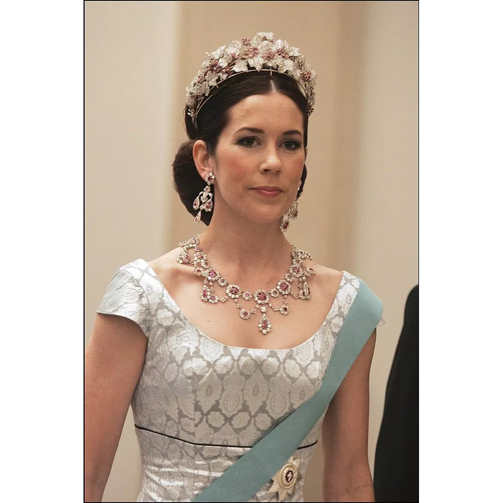 Η τιάρα από ρουμπίνια της πριγκίπισσας Mary της Δανίας: Σύμφωνα με το blog The Court Jeweller, που ειδικεύεται στους royals, οι πολύτιμοι λίθοι φορέθηκαν για πρώτη φορά από μια royal που βρισκόταν κοντά στο Ναπολέοντα. Τα κοσμήματα ταξίδεψαν αρκετά σε διαφορετικές χώρες μέσω βασιλικών γάμων, καταλήγοντας στη Δανία. Η τιάρα παραπέμπει στη μακρά παράδοση που συνδέει τις βασιλικές γενιές της Ευρώπης.