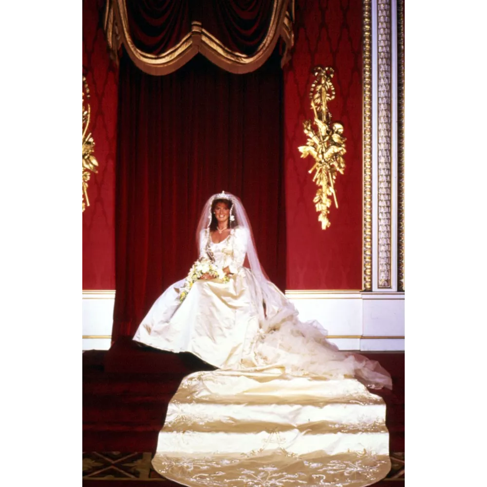 Το νυφικό της Sara Ferguson: Το ιβουάρ, μεταξωτό νυφικό της Fergie είχε κεντημένα στοιχεία από το εθνόσημο της οικογένειας, καθώς επίσης και τα αρχικά του ζευγαριού S & A.