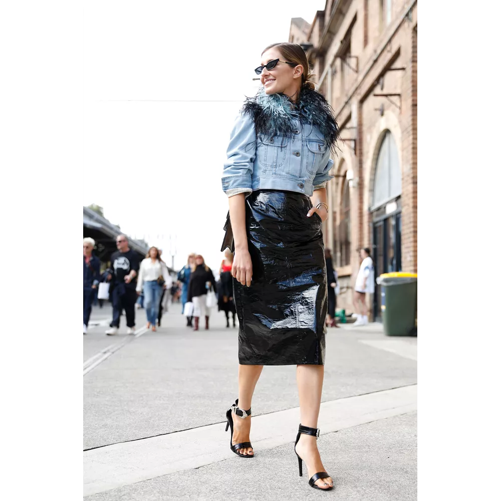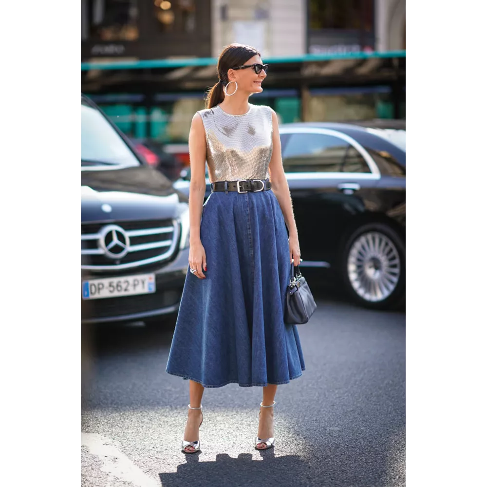 Την ίδια στιλιστική "συνταγή" οφείλετε να ακολουθήσετε αν αντί για τζιν παντελόνι επιλέξετε να φορέσετε μια denim φούστα ή ακόμα και το denim τζάκετ σας, που κι αυτό οφείλει να είναι μέρος- σ' ένα layering, για παράδειγμα- ενός look με κυρίαρχα τα λαμπερά κομμάτια.