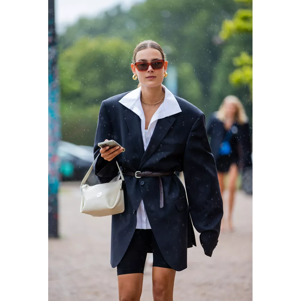 Ακολουθώντας τις τάσεις της σεζόν που θέλουν τις μίνι γραμμές σε φούστες και φορέματα στην κορυφή, ένα oversized blazer είναι η κατάλληλη επιλογή πανωφοριού για να υπάρχει αρμονία στα outfits σας. Ένας ακόμα στιλιστικός συνδυασμός που αγαπούν οι A-listers της μόδας είναι τα σακάκια σε συνδυασμό με biker shorts και stirrup leggings.
