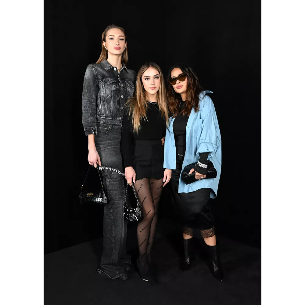 H Salma Hayek με την 14χρονη κόρη της Valentina και την 21χρονη Mathilde, κόρη του συζύγου της François-Henri Pinault από προηγούμενο γάμο, στο show του οίκου Balenciaga.