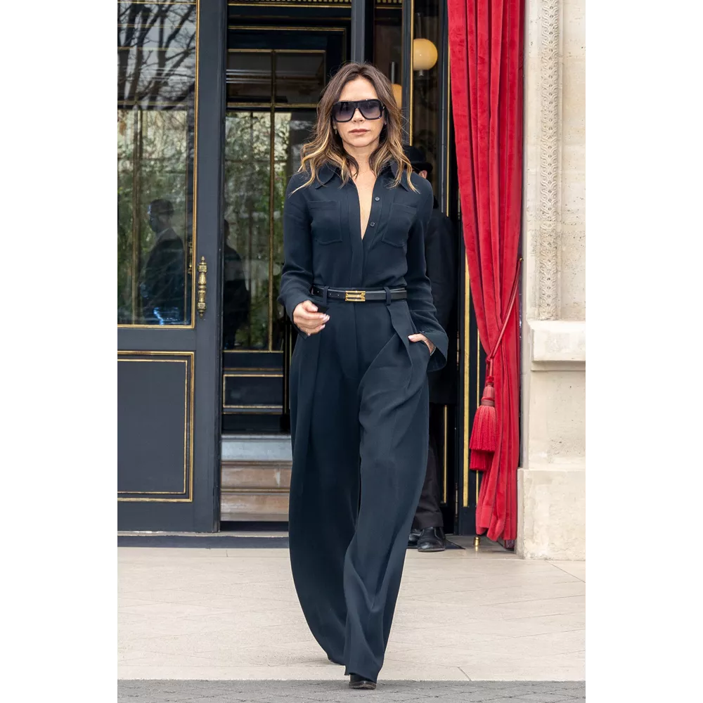 H Victoria Beckham στο Παρίσι κατώντας τσάντα από τη νέα της συλλογή.