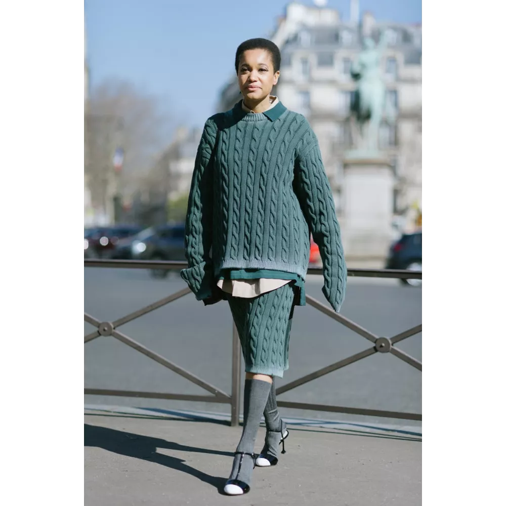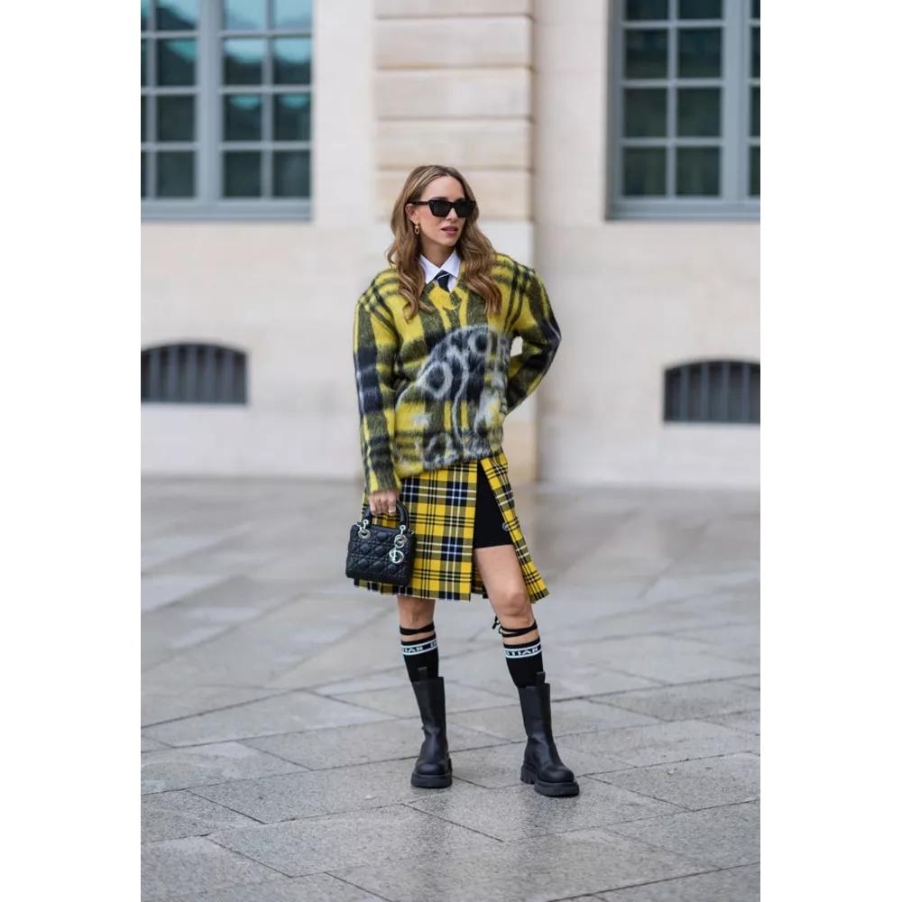H διάσημη fashionista Tamu McPherson κάνει πρόταση ποντάροντας σε πλεκτά twinsets, επιλέγοντας για την εμφάνισή της ένα cable-knit σετ σε πράσινη απόχρωση, το οποίο φόρεσε κάνοντας layering με πουκάμισο και polo τοπ, ενώ συνδύασε με κάλτσες και γόβες. Είναι μια διαφορετική, πιο updated, προσέγγιση στα κλασικά looks με knit co-ords. Τέλος, η Γερμανίδα επιχειρηματίας και fashion blogger Alexandra Lapp εμφανίστηκε στο Παρίσι φορώντας μία καρό φούστα σε κίτρινο-μαύρο και ένα καρό πουλόβερ σε παρόμοια απόχρωση κάνοντας μία τολμηρή επιλογή σε χρώμα για την εποχή. Ολοκλήρωσε το look της με λευκό πουκάμισο και γραβάτα μέσα από το πουλόβερ, γαλότσες και κάλτσες, και μια διαχρονική Lady Dior τσάντα.