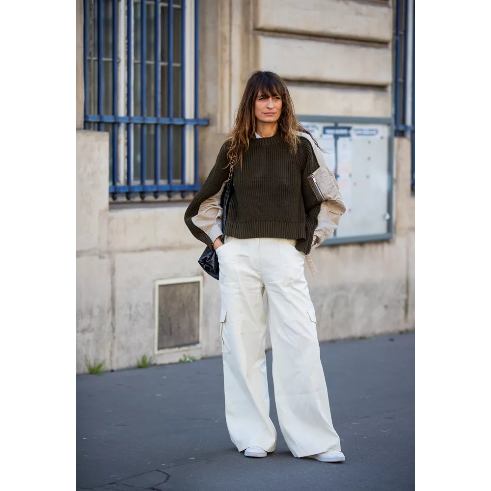 Αν είχαμε πρόσβαση στη ντουλάπα των πιο κομψών γυναικών άνω των 40, θα ανακαλύπταμε τόσο κλασικά κομμάτια όσο και τα τελευταία trends της μόδας, ενώ τα street style looks τους γίνονται αστείρευτη πηγή έμπνευσης για το δικό μας στιλ, ειδικά αυτή την εποχή που προχωράμε, χωρίς να έχουμε φτάσει ακόμα, στον βαρύ χειμώνα. Γαλλίδα μοντέλο με διεθνή καριέρα, στα 47 της χρόνια η Caroline de Maigret αποτελεί υπόδειγμα κομψής Παριζιάνας, και από τις εμφανίσεις της στην εβδομάδα μόδας στο Παρίσι ξεχωρίζει εκείνη στην οποία δίνει ψήφο εμπιστοσύνης σ' ένα cargo παντελόνι. Φαρδύ και σε υπόλευκη απόχρωση- το λευκό, εξάλλου, παντελόνι δεν απουσιάζει από τη γκαρνταρόμπα καμίας Γαλλίδας-, η Maigret συνδυάζει το παντελόνι της με πουλόβερ σε χακί απόχρωση και αθλητικά πετυχαίνοντας μία άριστη εμφάνιση ανεπιτήδευτου chic.