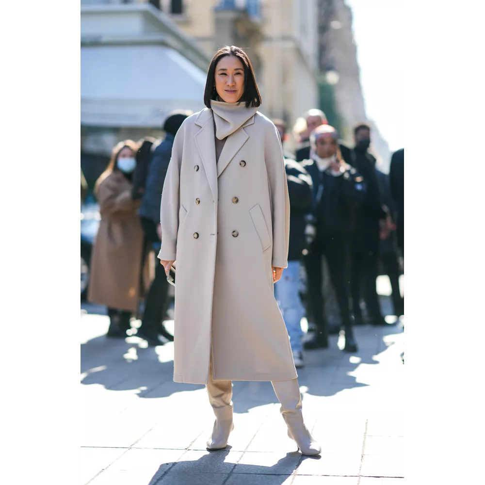 H Deputy Director της βρετανικής Vogue, Sarah Harris, είναι διάσημη για τα γκρι μαλλιά της και το μίνιμαλ στιλ της. Από τις εμφανίσεις στην εβδομάδα μόδας του Λονδίνου ξεχωρίσαμε αυτή στην οποία συνδυάζει ένα μαύρο δερμάτινο παντελόνι με λευκό πουλόβερ και κλασικές μαύρες σουέτ γόβες, προτάσσοντας το trend του black&white στις εμφανίσεις του χειμώνα. Από την άλλη, η Eva Chen, πρώην δημοσιογράφος σε γυναικεία έντυπα και νυν συγγραφέας και content creator, στηρίζει τα μονοχρωματικά σύνολα σε μπεζ. Τόσο το παλτό της όσο και οι knee-high μπότες που συνδύασε στο look στη διάρκεια της fashion week στο Παρίσι είναι σ' αυτή την neutral απόχρωση, που έχει γίνει πολύ δημοφιλής στη μόδα φέτος, ενώ το πουλόβερ που διακρίνεται μέσα από το παλτό της είναι έναν τόνο πιο σκούρο.