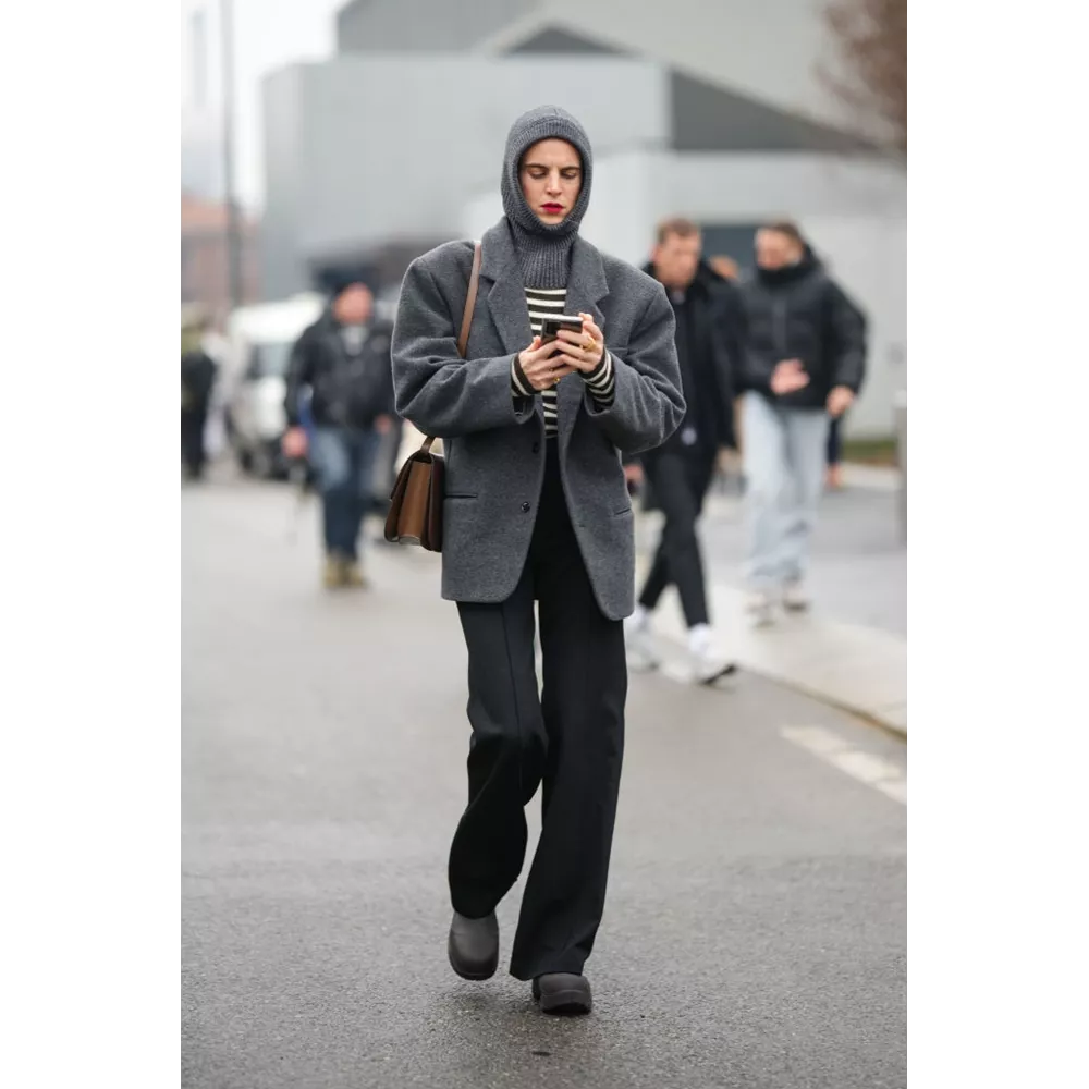 Τα φαρδιά τζιν παντελόνια είτε τύπου "καμπάνα" είτε σε baggy γραμμή ήταν επίσης ανάμεσα στις επιλογές των fashion insiders, ενώ τα είδαμε να συνδυάζονται με φαρδιά παλτό, κοντά σακάκια, κλασικές ζακέτες και δερμάτινα trench coats. Ξεχωρίσαμε, επίσης, την επιλογή αρκετών καλεσμένων να φορέσουν λευκές μπότες, αλλά και κάποιων άλλων να φορέσουν μάλλινη κουκούλα - ακολουθώντας τη δημοφιλή τάση του balaclava. Οι παστέλ αποχρώσεις - όπως το απαλό ροζ και το γαλάζιο - ξεχώρισαν ανάμεσα σε έντονες επιλογές, ενώ μία τάση που την οφείλουμε στον οίκο Prada (και τη holiday collection του), είναι αυτή που συνδυάζει occasion wear (metal-plate διχτυωτά κομμάτια, metallic lurex πλεκτά, διαφάνειες και χρυσές/ασημί τσάντες) και casual στιλ (tank tops, sneakers), και είδαμε να υιοθετούν πολλές fashionistas.