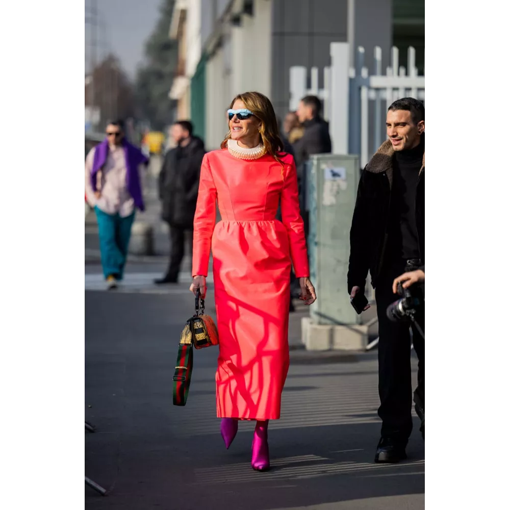 Η πρώτη τάση που ξεχωρίζει μέσα από το μιλανέζικο street style του φετινού χειμώνα είναι αυτή την οποία φρόντισε να μας συστήσει η πάντα πληθωρική και έντονη στο στιλ της Anna Dello Russo, που για τις εμφανίσεις επέμεινε σε συγκεκριμένο color combo: του κόκκινου με το φούξια. Η πρώην αρχισυντάκτρια της Vogue Japan ενώνει στα looks δυο χρώματα που συνδυάζουν την τάση που επικράτησε στη μόδα το 2022, το hot pink, με εκείνη που φαίνεται ότι θα επικρατήσει στο στιλ του 2023, το κόκκινο. Σακάκια, πουλόβερ, φορέματα, τσάντες και άλλα αξεσουάρ σε κόκκινο έκαναν αισθητή την παρουσία τους σ' αυτό το street style.