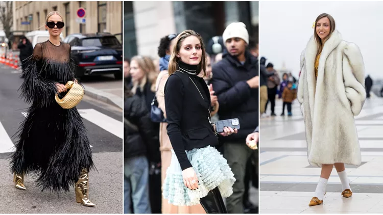 Αν, λοιπόν, μπορούμε κάπως να συνοψίσουμε τις τάσεις που ξεπήδησαν από το παριζιάνικο street style, να πούμε ότι τα στοιχεία του glam style και του μαξιμαλισμού έκαναν έντονα αισθητή την παρουσία τους. Γούνες (πολλές γούνες), φτερά (σε παλτό, φούστες, φορέματα ακόμα και αξεσουάρ), tuxedo σακάκια (συνδυασμένο σε κοστούμια ή με μάξι φορέματα), sequins, βελούδο (σε κάθε πιθανή του εκδοχή, από κοστούμια, φορέματα μέχρι κάπες) και χρυσά (κοσμήματα, ρούχα και αξεσουάρ) έδωσαν την ένταση σε looks που δεν ήταν απαραίτητα βραδινά.
