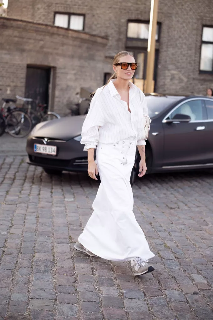 Μία ματιά στις εικόνες από το street style στις μεγάλες πρωτεύουσες της μόδας και σύντομα θα διαπιστώσετε ότι οι καλά ενημερωμένες fashionistas προτίμησαν για φέτος τη μακριά ντένιμ φούστα στις casual chic εμφανίσεις. Οι τρόποι με τους οποίους επέλεξαν να τη φορέσουν γίνονται έμπνευση και για τα δικά μας φθινοπωρινά outfits και αυτές οι ιδέες είναι οι εξής: Το "canadian tuxedo" style είναι πολύ δημοφιλές ανάμεσα στις προτάσεις των fashionistas, δηλαδή η τζιν φούστα φορεμένη με ντένιμ πουκάμισο ή τζάκετ, ενώ άλλη δημοφιλής πρόταση είναι αυτή που συνδυάζει μάξι ντένιμ φούστα με λευκά tank top ή λευκά t-shirt ή πουκάμισα.