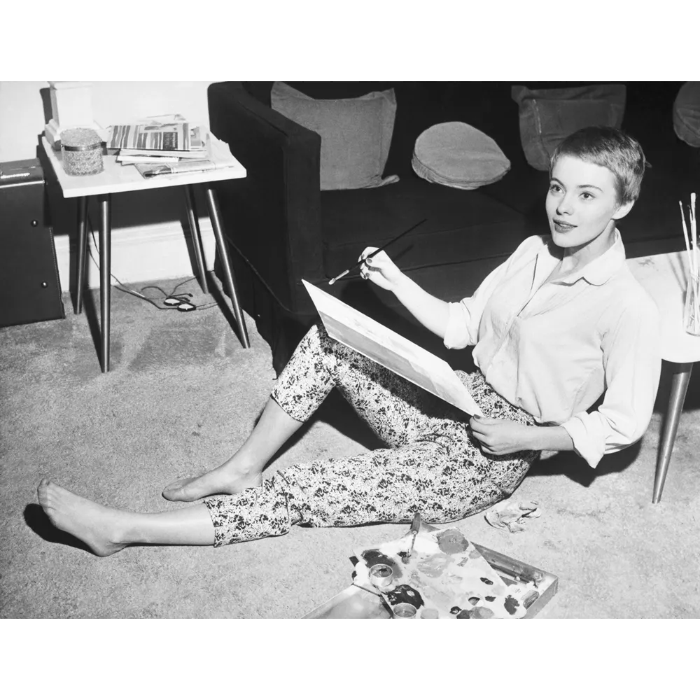 Φωτογραφημένη στο διαμέρισμά της στη Νέα Υόρκη το 1957, φορώντας floral cigarette pants και κλασικό λευκό πουκάμισο.