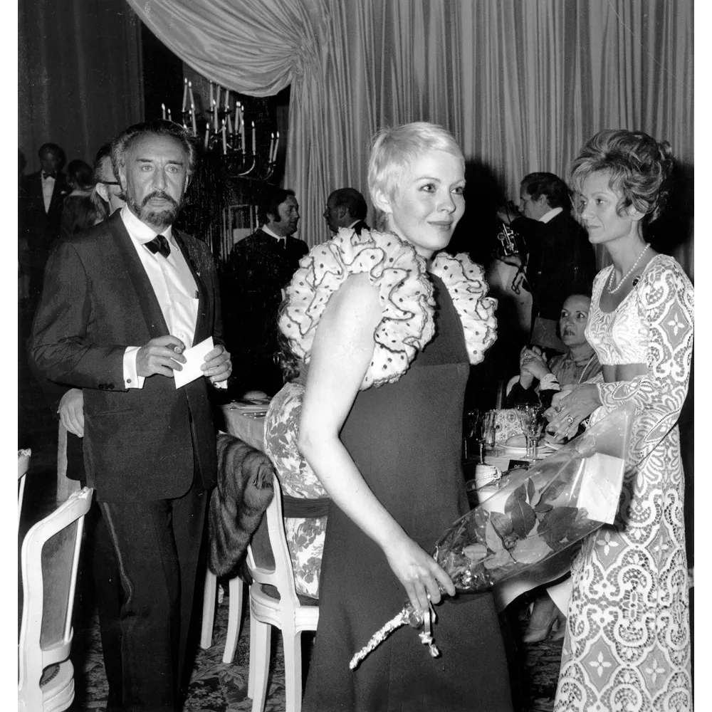 Φόρεσε ένα sequinned top με μεταξωτή slip skirt στην ταινία Les Oiseaux vont mourir au Perou, στη Γαλλία το 1967.
