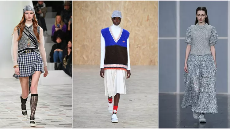 Το προβάδισμα στα πλεκτά γιλέκα, που ήταν ένα trend αρκετά δημοφιλές στα 90ς και που μας παραπέμπει ελαφρώς σ' ένα back-to-school στιλ για "nerds", έδωσαν πρώτα οι fashion οίκοι, οι οποίοι στις collection τους για τη σεζόν Α/W 20 φρόντισαν να εντάξουν μπόλικο knitwear, και ειδικά τα γιλέκα. Dior, Prada, Gucci, Lacoste έκαναν το δικό τους statement επενδύοντας είτε στο "granny" ύφος ή σε έντονα χρώματα και graphic prints, ενώ Cecilie Bahnsen και Alessandra Rich είχαν τη δική τους συμμετοχή στην ανάδειξη της τάσης με πιο ρομαντικές εκδοχές.
