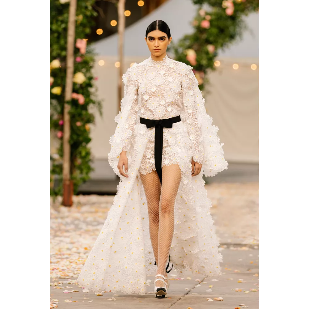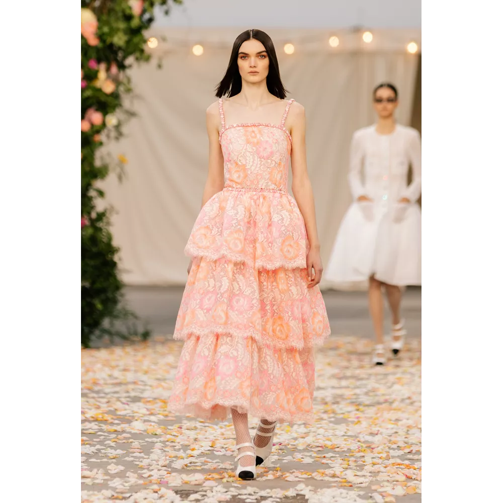 Τα μοντέλα με τις elegant, ρομαντικές και girly δημιουργίες στα χρώματα της άνοιξης, όπως τα έντονα ροζ και τα παστέλ, περπάτησαν στον "ντυμένο" με γιρλάντες από άνθη "κήπο" του Grand Palais, ενώ ανάμεσα στις guests διακρίνονται οι ambassadors Penelope Cruz, Marion Cottilard, Vanessa Paradis, Lily-Rose Depp, Caroline de Maigret, Alma Jodorowsky, Izïa και Joana Preiss.