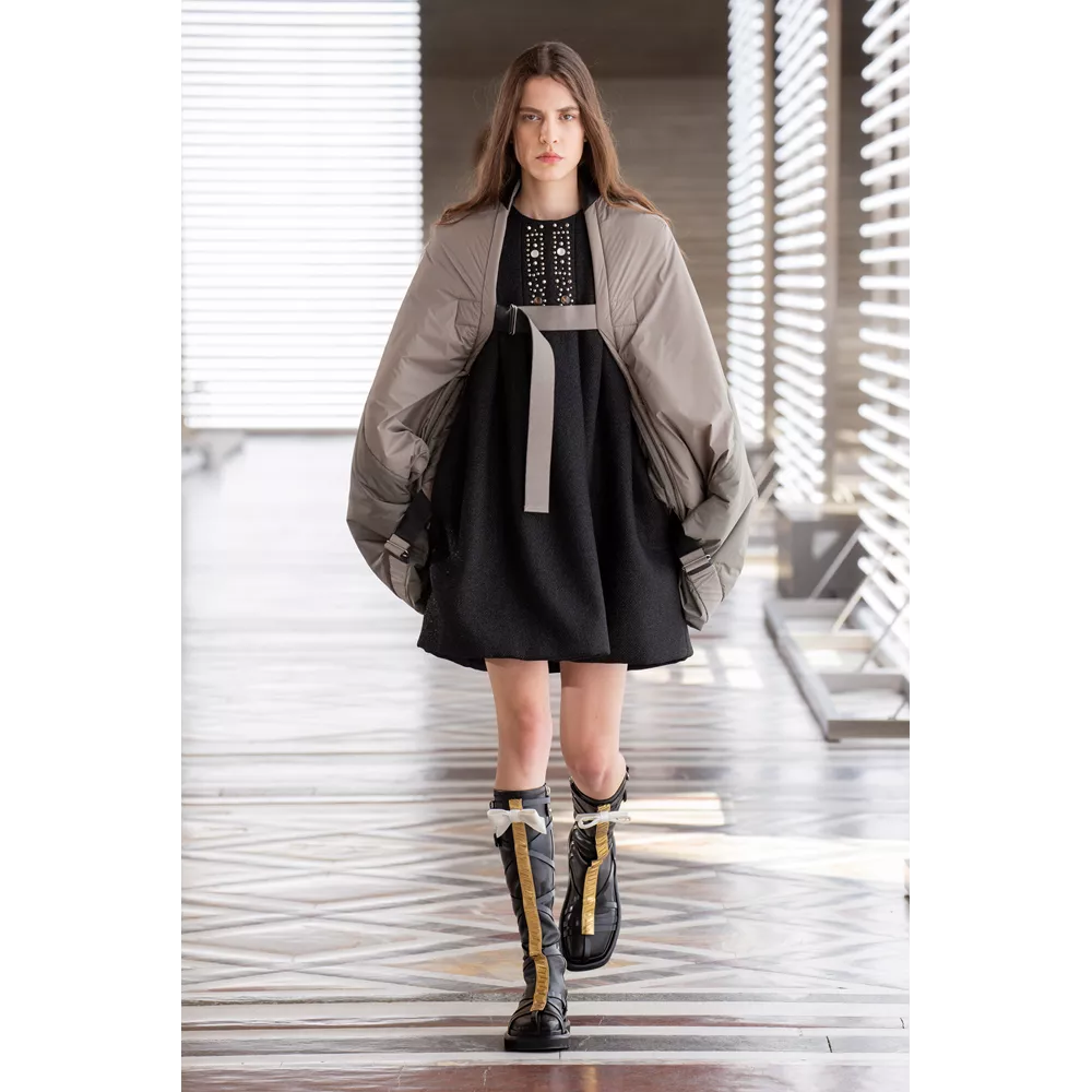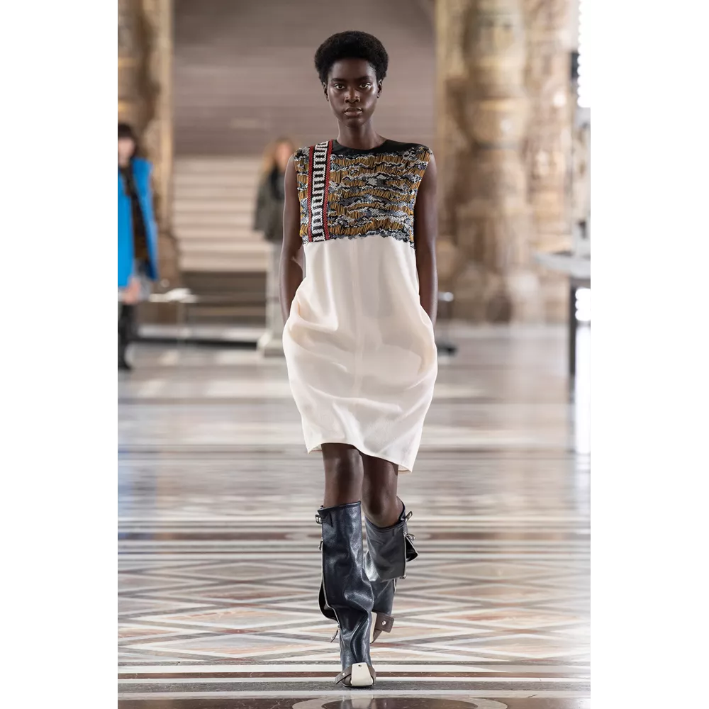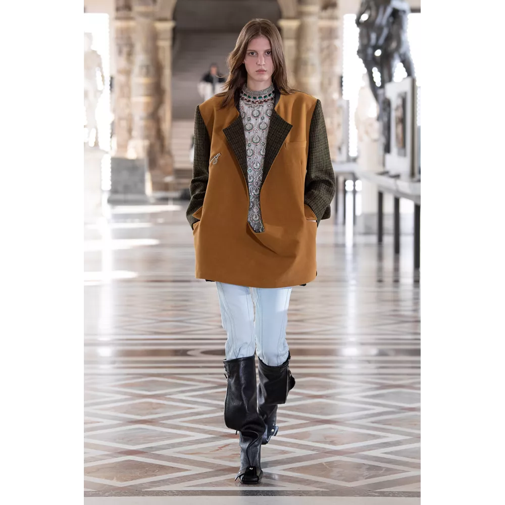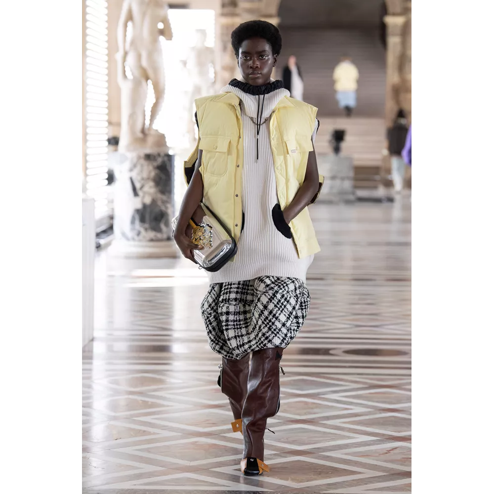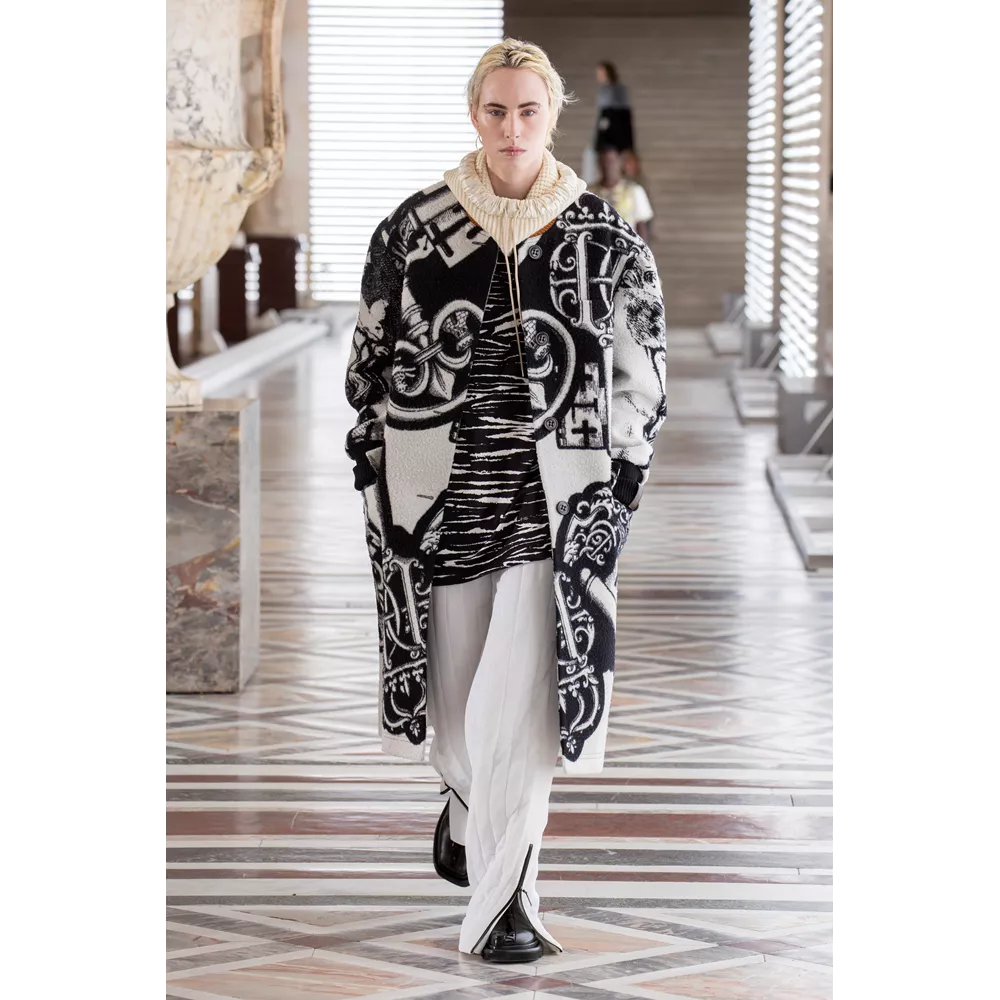 Οι αντιθέσεις ανάμεσα σε λαμπερά, ντελικάτα και relaxed, sporty και ογκώδη κομμάτια είναι εμφανείς στην FW21 collection, με τον Ghesquière να έχει την επιπλέον ευφυΐα να μην περιοριστεί με τις δημιουργίες τους μόνο στο "πάντρεμα" του comfy και loose με το glam και το chic ή το punk. Ο Ghesquière επενδύει σε σχέδια και σιλουέτες που ξεχωρίζουν και γίνονται μοναδικές, όπως τα oversized πανωφόρια που μοιάζουν με κουκούλια ή τις ιδιαίτερες balloon φούστες από πιο "καθημερινά" υφάσματα, αλλά και σε υφάσματα, όπως το fleece, που μπορεί να μοιάζει ταπεινό σε σχέση με τα λαμπερά sequin με τα οποία συνδυάζεται ή τα δερμάτινα της συλλογής, ωστόσο αποκτά high fashion οντότητα, από τον τρόπο με τον οποίο είναι δουλεμένο.