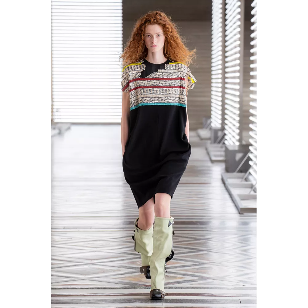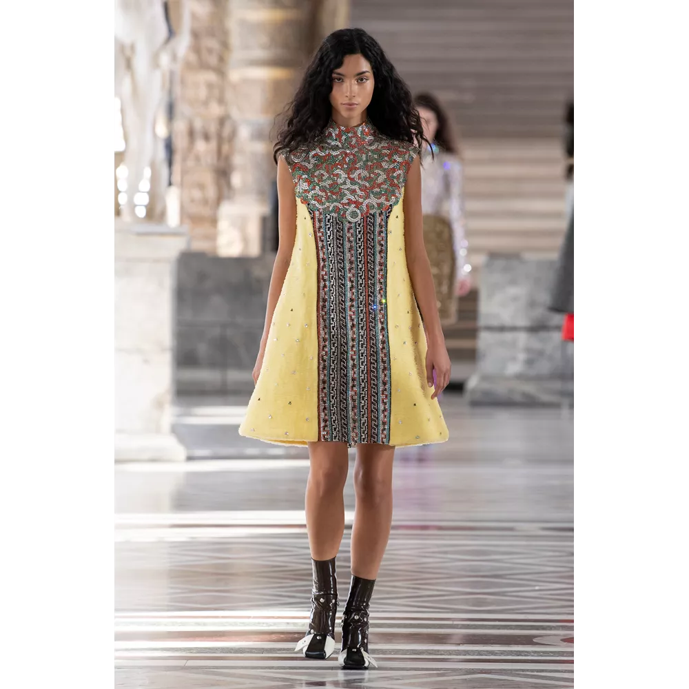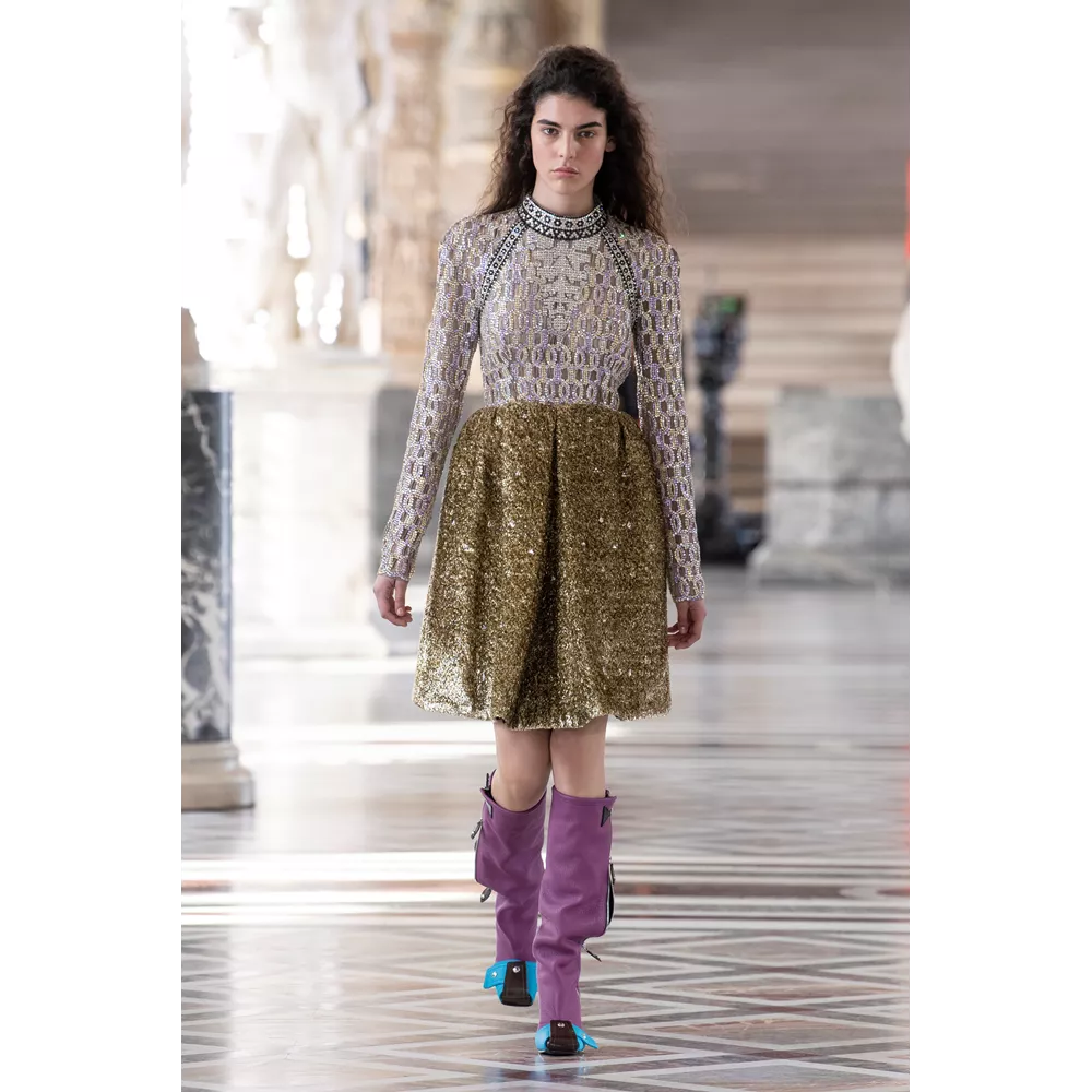 Η παρουσίαση της συλλογής ξεκινάει με τον ίδιο τον Nicolas Ghesquière να μας υποδέχεται στο show του δηλώντας "ελπίζω να το ευχαριστηθείτε από το σπίτι, απ' όποιο σημείο του πλανήτη κι αν βρίσκεστε". Την πασαρέλα των μοντέλων ανάμεσα σε ελληνικά, ετρουσκικά και ρωμαϊκά γλυπτά, συνοδεύει η μουσική των Daft Punk, ενώ το show "ανοίγει" μ' ένα μοντέλο που εμφανίζεται φορώντας ένα από τα signature κομμάτια αυτής της συλλογής: τις τούλινες φούστες που μοιάζουν με κρινολίνα και ο σχεδιαστής έχει συνδυάσει με oversized φούτερ μπλούζες.