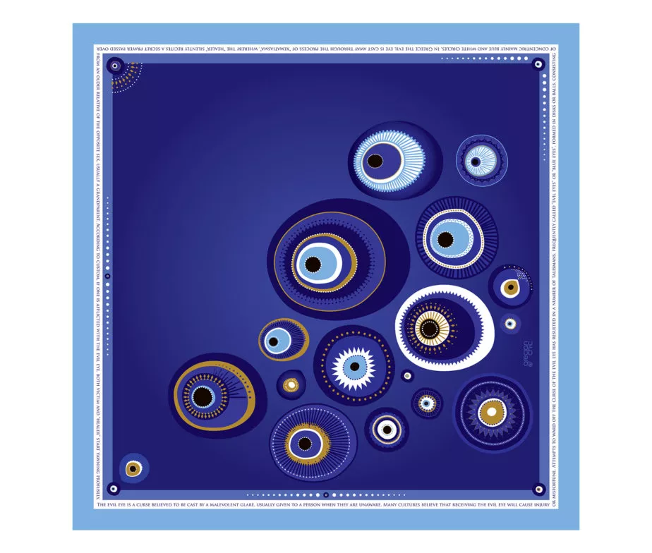 Μαντήλι twill silk με print «evil eyes», Grecian Chic by Elena Zournatzi.