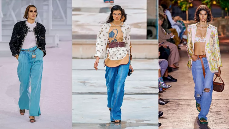 των mom jeans των ’80s και να συνδυάζονται σχεδόν αποκλειστικά με μποτάκια, φαρδιά blazers και baseball καπέλα σε μια απόπειρα σύνθεσης του πορτρέτου της "νέας γενιάς", όπως δήλωσε χαρακτηριστικά ο ίδιος. Στην ίδια φαρδιά γραμμή, φορεμένα ψηλά στη μέση και τονισμένα με ζώνες, κινήθηκαν τα τζιν και στους οίκους Chloé και Balenciaga. Στην Chloé η Natacha Ramsay-Levi επανασύστησε την ιδέα των βασικών κομματιών της γκαρνταρόμπας δίνοντας μια ’70s διάθεση στα ανοιχτόχρωμα τζιν, που συνδύασε μεpatchwork tunics. Στον Balenciaga ο Demna Gvasalia για άλλη μία φορά ενοποίησε διαφορετικά φύλα και μεγέθη προτείνοντας ένα νέο office look με χαλαρά τζιν, υπερμεγέθη πουκάμισα και slippers ξενοδοχείου – ιδανικός συνδυασμός για το work from home στυλ. Τέλος, ο μάστερ της σύγχρονης θηλυκότητας Pierpaolo Piccioli στον Valentino κατάφερε να φορτίσει συναισθηματικά ακόμα και το ντένιμ.