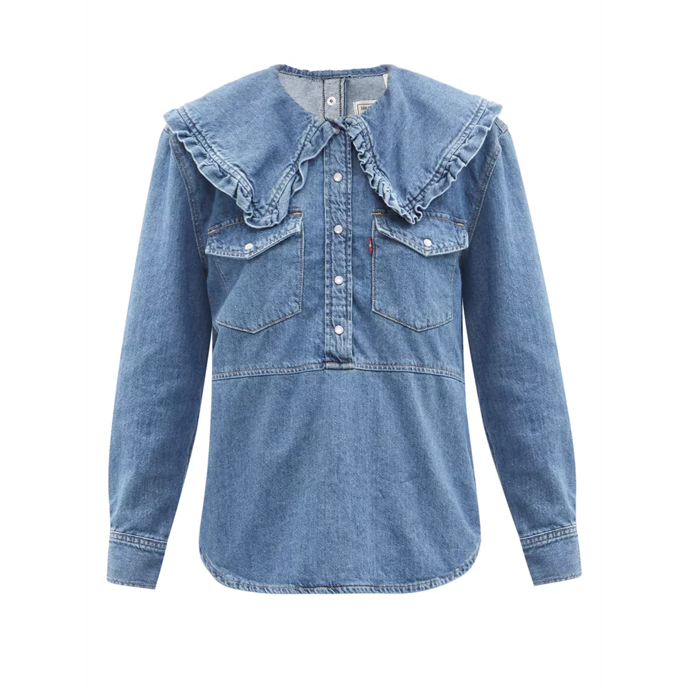 Πουκάμισο ντένιμ με γιακά με βολάv, Ganni X Levi's.