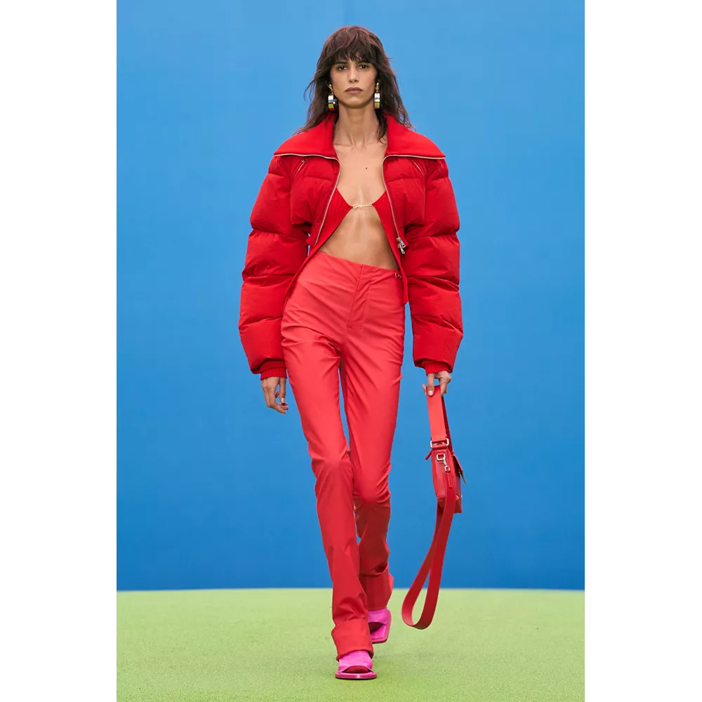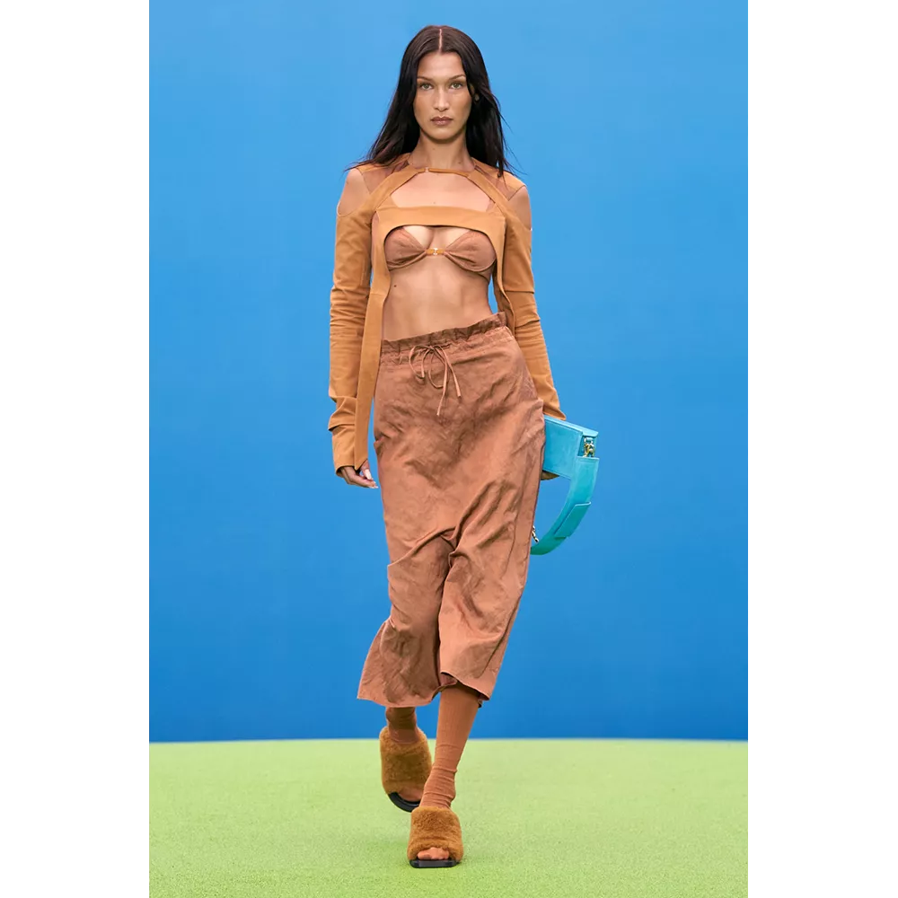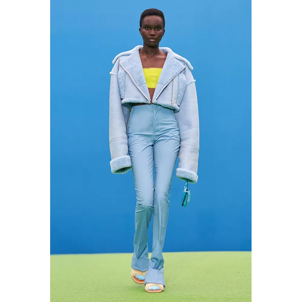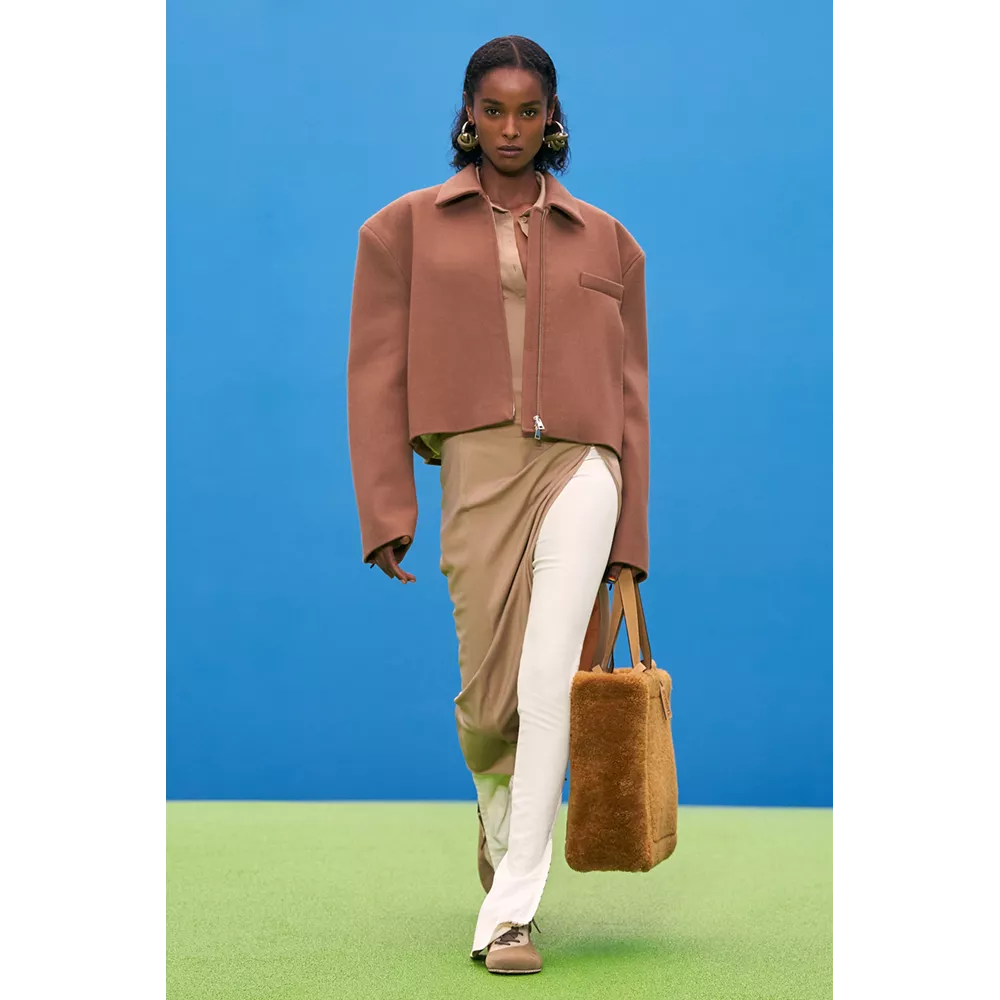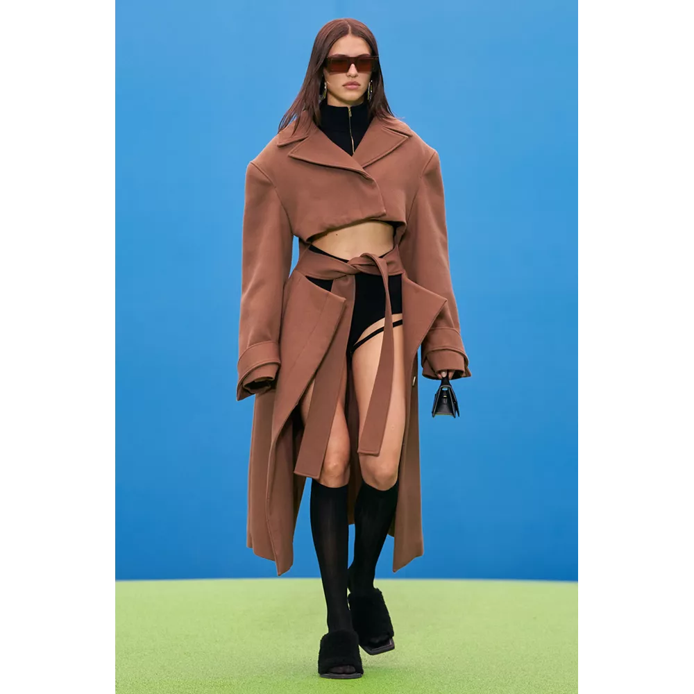 Οι σιλουέτες του Jacquemus από την Fall 2021 συλλογή του διατηρούν το sexiness στο οποίο μας έχει συνηθίσει ο σχεδιαστής και το midriff παραμένει κυρίαρχο χαρακτηριστικό σε πολλές δημιουργίες. Τα crop tops και τα bralette επιστρέφουν και φοριούνται κάτω από "φουσκωτά" μπουφάν, cropped shearling jackets και αποδομημένα παλτό.
