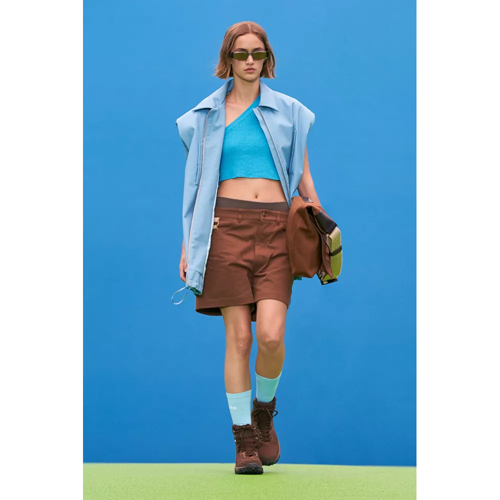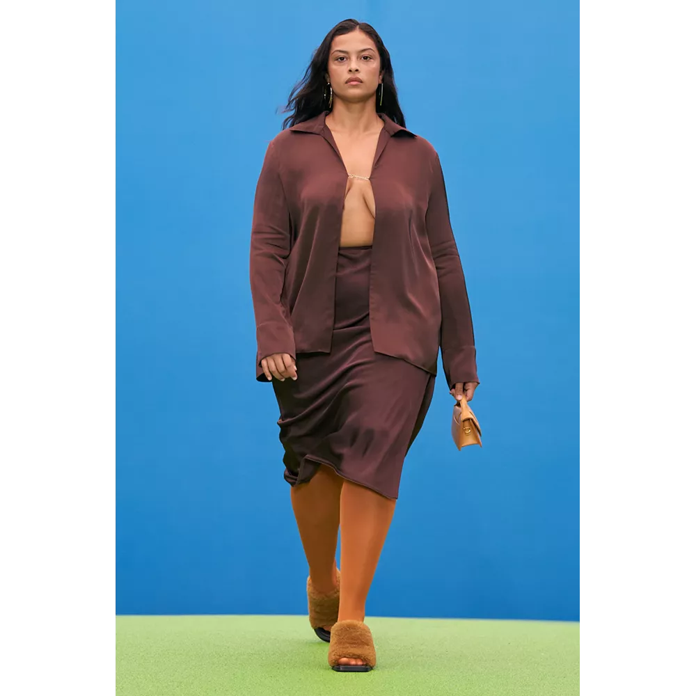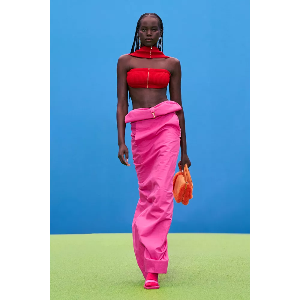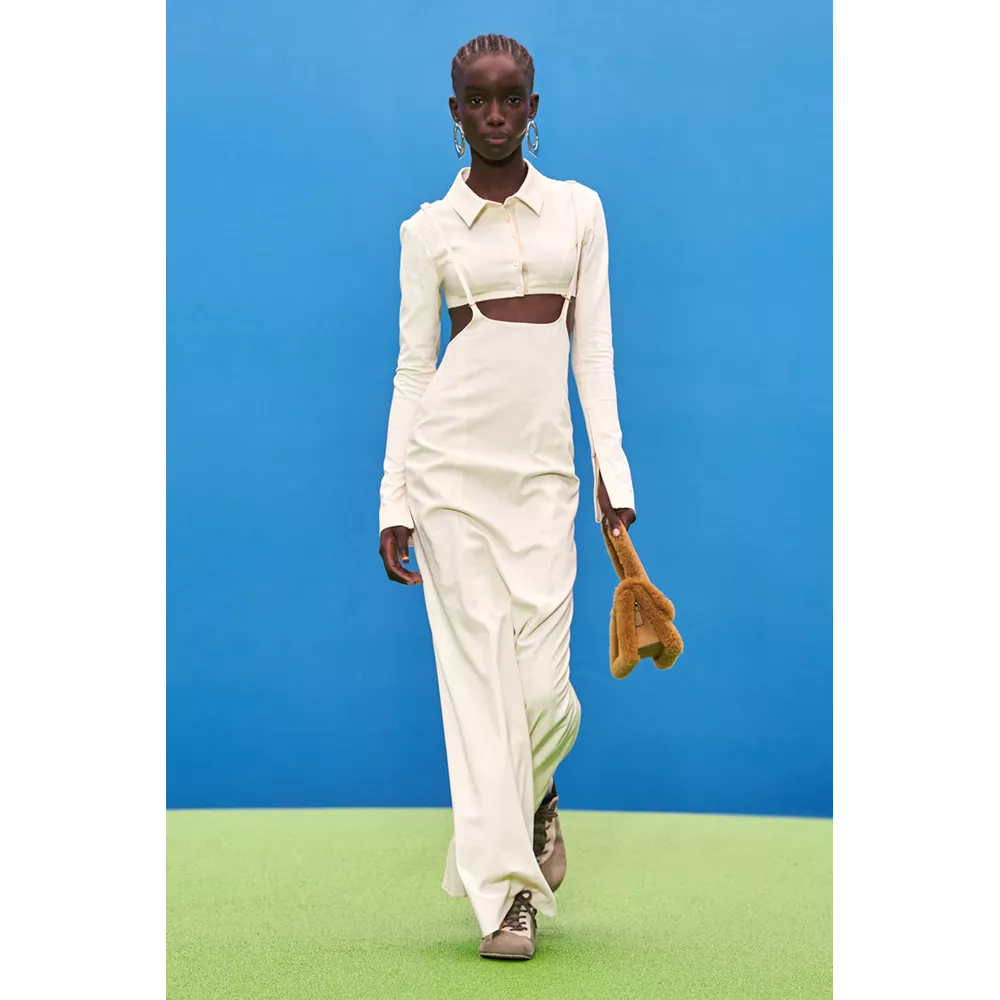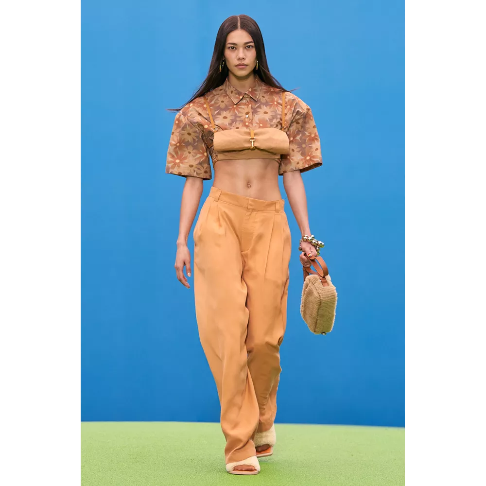 Οι σιλουέτες του Jacquemus από την Fall 2021 συλλογή του διατηρούν το sexiness στο οποίο μας έχει συνηθίσει ο σχεδιαστής και το midriff παραμένει κυρίαρχο χαρακτηριστικό σε πολλές δημιουργίες. Τα crop tops και τα bralette επιστρέφουν και φοριούνται κάτω από "φουσκωτά" μπουφάν, cropped shearling jackets και αποδομημένα παλτό.