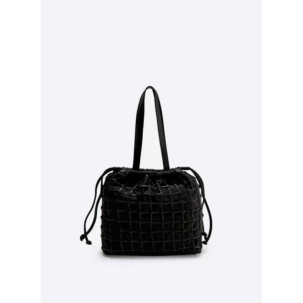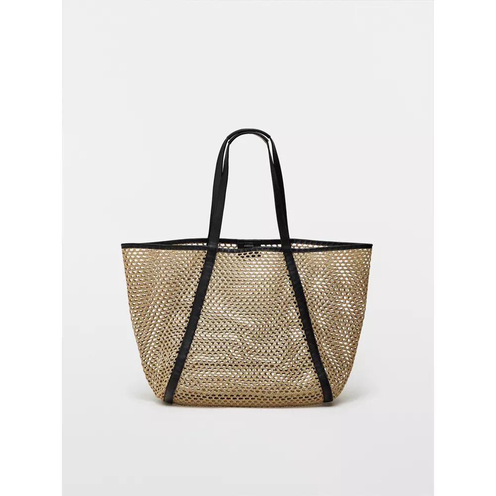 Τσάντα tote με δίχτυ και λεπτομέρειες από δέρμα, Massimo Dutti.
