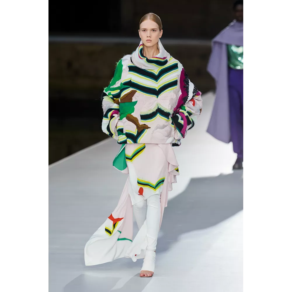Με πιο απλά λόγια, ο ταλαντούχος καλλιτεχνικός διευθυντής δανείζεται την απεριόριστη ελευθερία που επιβάλλει η παραγωγή τέχνης, τη μεταφέρει μαζί με τους εκπροσώπους της στα ατελιέ του και μέσα από την "επαφή" και την επικοινωνία, αφήνει τη δημιουργία να λάμψει. Οι εντυπωσιακοί όγκοι και το dramatic μήκος εναλλάσσονται με σοφιστικέ σύνολα, σούπερ μίνι σιλουέτες έως και μίνιμαλ γραμμές με τα πολύ καθαρά, έντονα χρώματα, τους συνδυασμούς τους και τα μοτίβα να αποδίδουν μοναδικά το σχήμα και τις σιλουέτες. Ο Piccioli αφήνει, επίσης, χωρίς αναφορά φύλου τις δημιουργίες του, παρουσιάζοντας στην πασαρέλα άντρες μοντέλα με looks στα οποία συμπεριλαμβάνονται φούστες ή ντυμένους με κομμάτια που θα μπορούσαν άνετα να φορέσουν και γυναίκες.