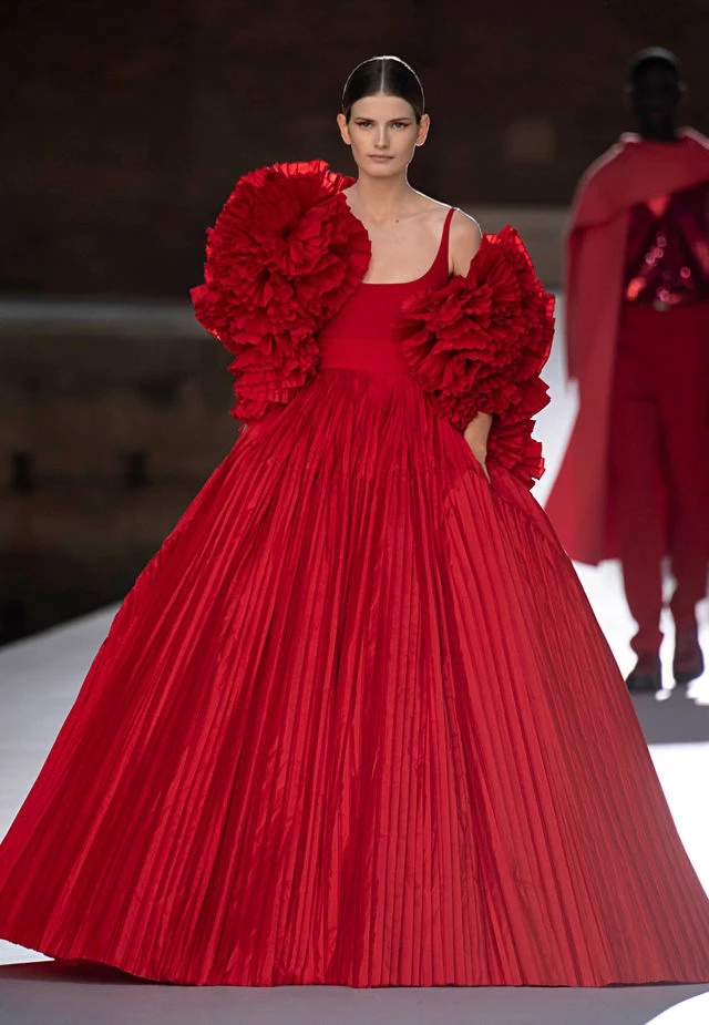 Με πιο απλά λόγια, ο ταλαντούχος καλλιτεχνικός διευθυντής δανείζεται την απεριόριστη ελευθερία που επιβάλλει η παραγωγή τέχνης, τη μεταφέρει μαζί με τους εκπροσώπους της στα ατελιέ του και μέσα από την "επαφή" και την επικοινωνία, αφήνει τη δημιουργία να λάμψει. Οι εντυπωσιακοί όγκοι και το dramatic μήκος εναλλάσσονται με σοφιστικέ σύνολα, σούπερ μίνι σιλουέτες έως και μίνιμαλ γραμμές με τα πολύ καθαρά, έντονα χρώματα, τους συνδυασμούς τους και τα μοτίβα να αποδίδουν μοναδικά το σχήμα και τις σιλουέτες. Ο Piccioli αφήνει, επίσης, χωρίς αναφορά φύλου τις δημιουργίες του, παρουσιάζοντας στην πασαρέλα άντρες μοντέλα με looks στα οποία συμπεριλαμβάνονται φούστες ή ντυμένους με κομμάτια που θα μπορούσαν άνετα να φορέσουν και γυναίκες.