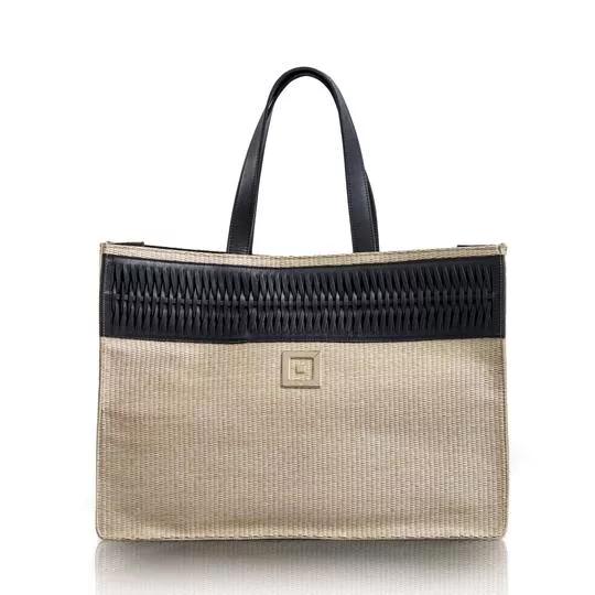 Ψάθινη beach bag με λεπτομέρεια από δέρμα, Themis Z.