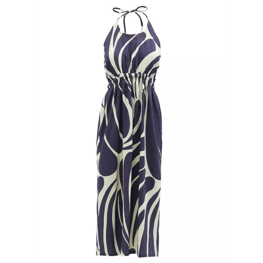Halterneck εμπριμέ λινό φόρεμα, Cala de la Cruz.