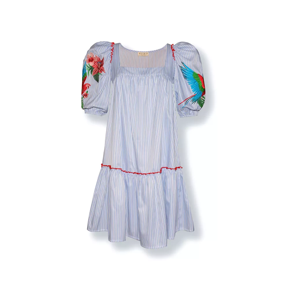 Ριγέ μίνι φόρεμα με σχέδιο στα μανίκια, Nema Resort Wear.
