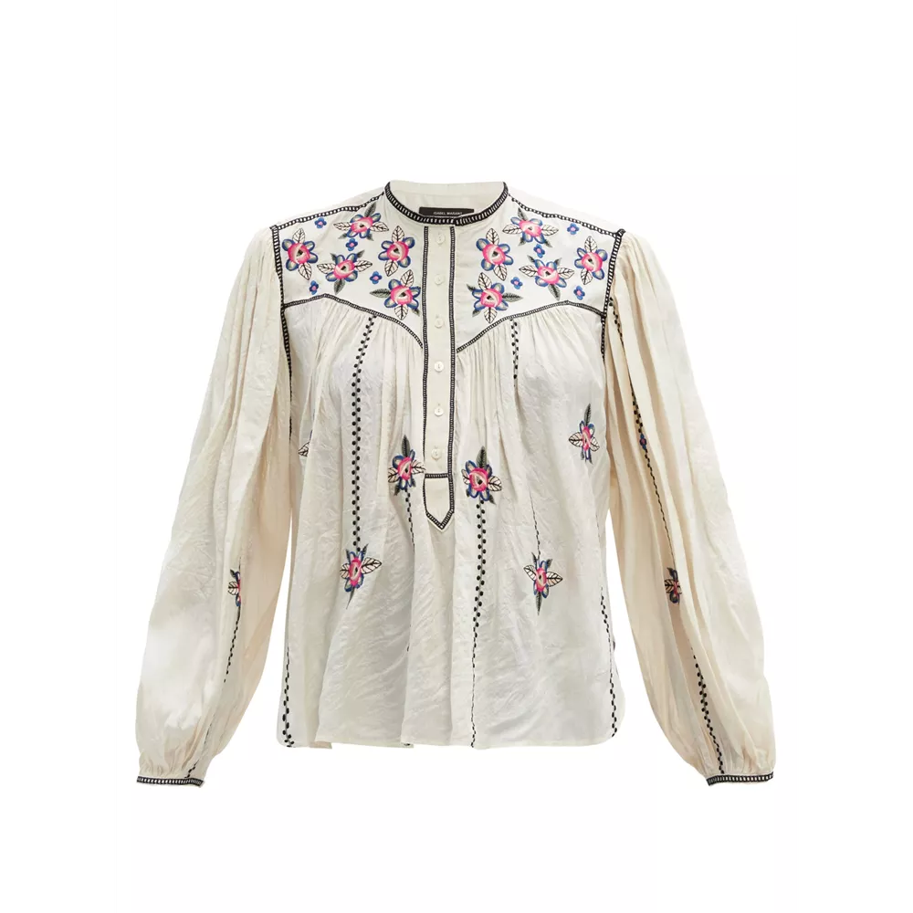 Μεταξωτή μπλούζα με κεντημένα φλοράλ, Isabel Marant.