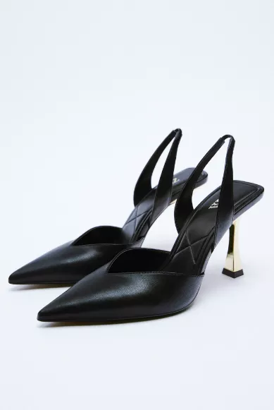 Εξώφερτο παπούτσι με τακούνι μεταλλιζέ, Zara.