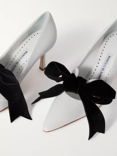 "Serba" σουέτ γόβες με φιόγκο, Manolo Blahnik.