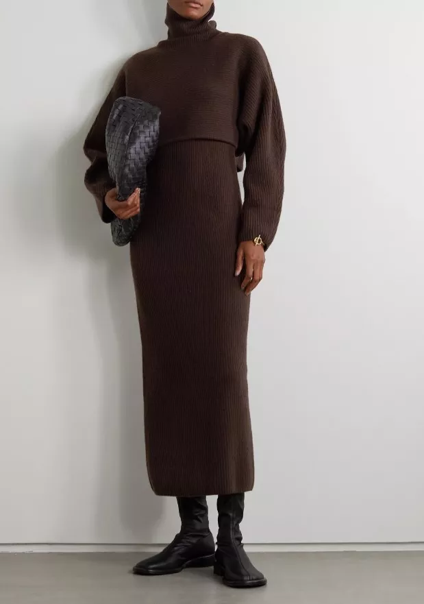 Ribbed μάλλινο μάξι φόρεμα και πουλόβερ ζιβάγκο (σετ), LVIR.