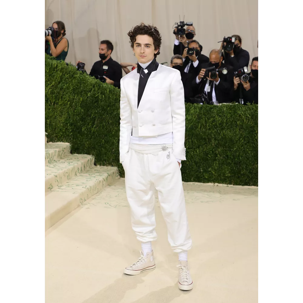 O Timothée Chalamet με κοστούμι Haider Ackermann και Converse sneakers.