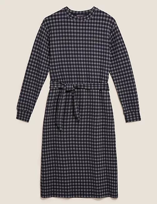Καρό μίντι ίσιο φόρεμα με ζώνη, Marks&Spencer.