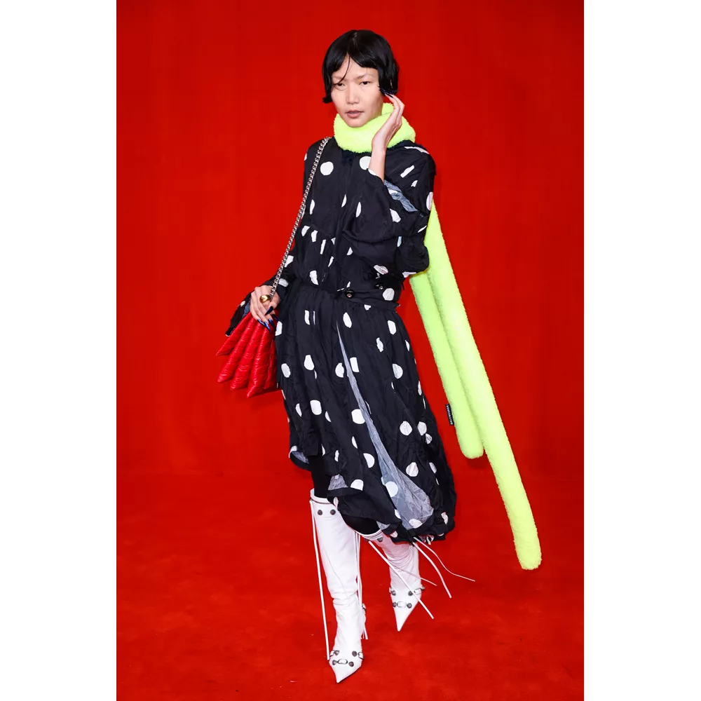 Το κόκκινο χαλί που έστησε ο οίκος Balenciaga έξω από το Τhéâtre du Châtelet στο Παρίσι το βράδυ του Σαββάτου (2 Οκτωβρίου) είχε την εξής ιδιαιτερότητα: μαζί με τους celebrity καλεσμένους - ανάμεσά τους η Naomi Campbell, η Cardi B και ο σύζυγός της, Offset, η Natalia Vodianova, η Amber Valletta, o Elliot Page και η Isabelle Huppert (οι τρεις τελευταίοι σε διπλό ρόλο μοντέλου- celebrity), περπάτησαν τα μοντέλα του οίκου φορώντας τις νέες δημιουργίες. Την ίδια στιγμή, οι υπόλοιποι καλεσμένοι μέσα στην αίθουσα παρακολουθούσαν σε live streaming όσα συνέβαιναν στο κόκκινο χαλί εκτός, σε "μια πρεμιέρα όπου το ίδιο το event γίνεται το show ", όπως περιγράφει ο οίκος. Ενδιαφέρουσα λεπτομέρεια: οι καλεσμένοι του front row καλούνταν να διασχίσουν το κόκκινο χαλί και να ποζάρουν για τους φωτογράφους αγνοώντας ότι εκείνη τη στιγμή τους παρακολουθούσαν σε live-streaming το κοινό στην αίθουσα και ...όλος πλανήτης από τα social media.