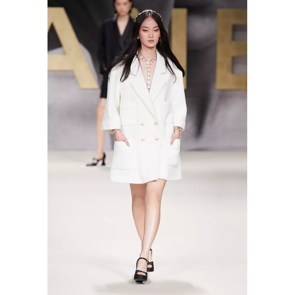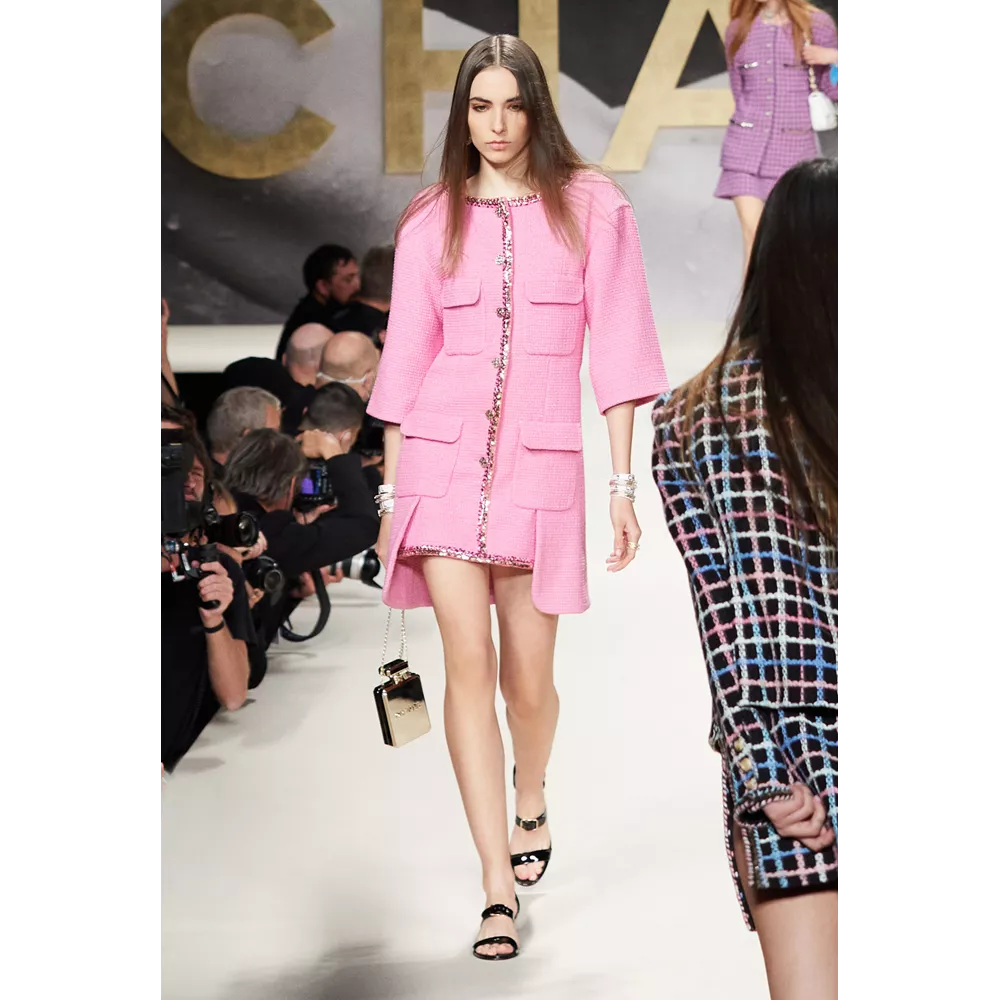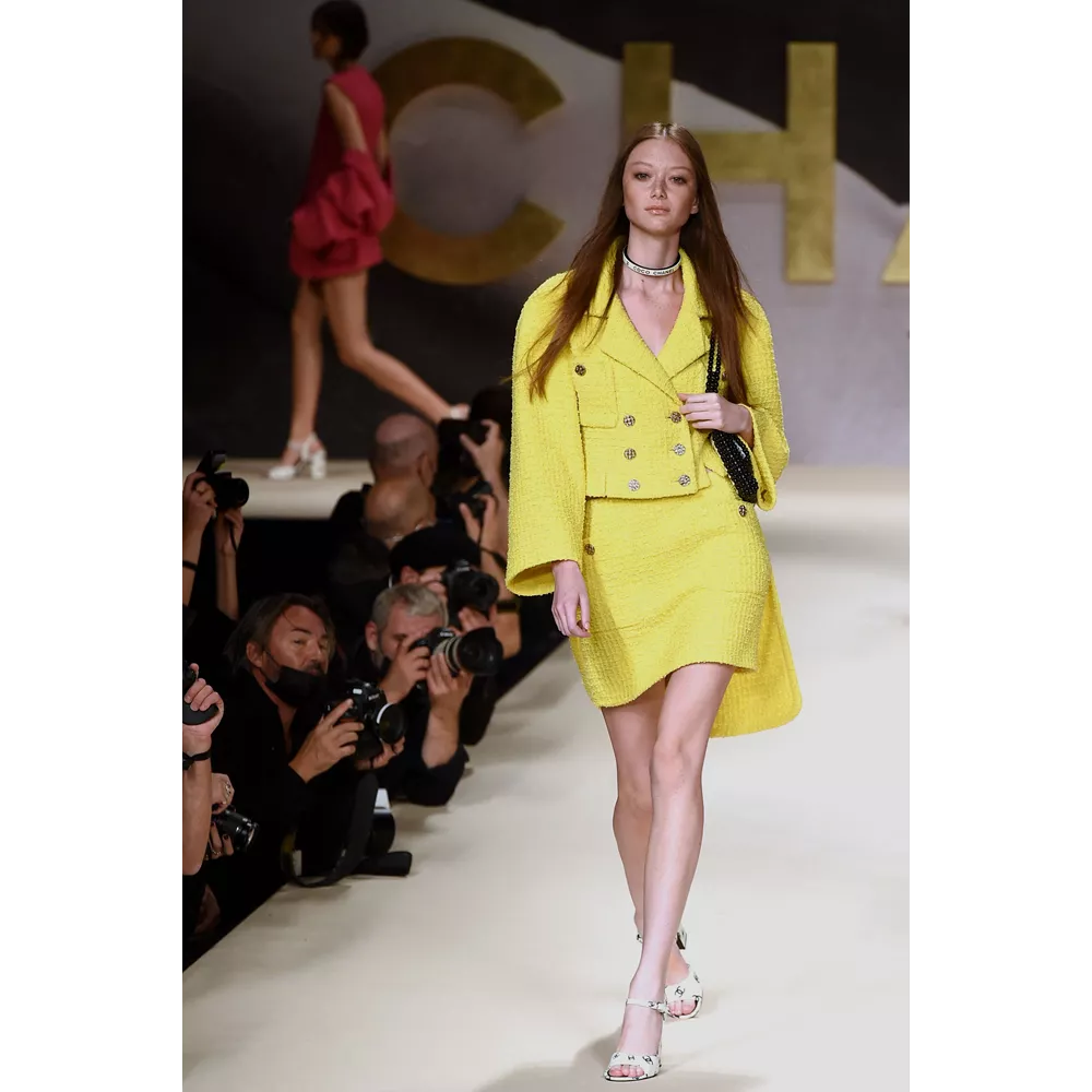 Με προσωρινή στέγη το Grand Palais Éphémère, αντί για τη "μόνιμη κατοικία" των shows του, το Grand Palais, το οποίο ανακαινίζεται, ο οίκος Chanel επέστρεψε στα ντεφιλέ μ' ένα πληθωρικό runway για τη συλλογή του Άνοιξη- Καλοκαίρι 2022, γεμάτο νοσταλγία και αναφορές. Το catwalk άνοιξε το μοντέλο Vivienne Rohner, η πρωταγωνίστρια των video teasers που ετοίμασαν ως πρόλογο της συλλογής οι Inez & Vinoodh, ενω την ίδια στιγμή άστραψαν τα φλας των φωτογράφων που ήταν παραταγμένοι περιμετρικά του catwalk προσφέροντας μία γνήσια εμπειρία πασαρέλας, όπως στα '80s, που μαζί με τα πρώιμα '90s, δάνεισαν έμπνευση στην καλλιτεχνική διευθύντρια Virginie Viard. Όπως θα δηλώσει χαρακτηριστικά: "Μού άρεσε πολύ ο ήχος των φλας που συνόδευαν τις πασαρέλες στα '80s, όταν τα μοντέλα περπατούσαν σε υπερψωμένα runway. Ήθελα να αναβιώσω αυτό το συναίσθημα".