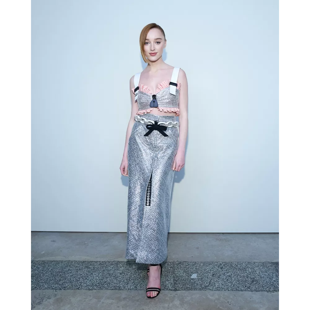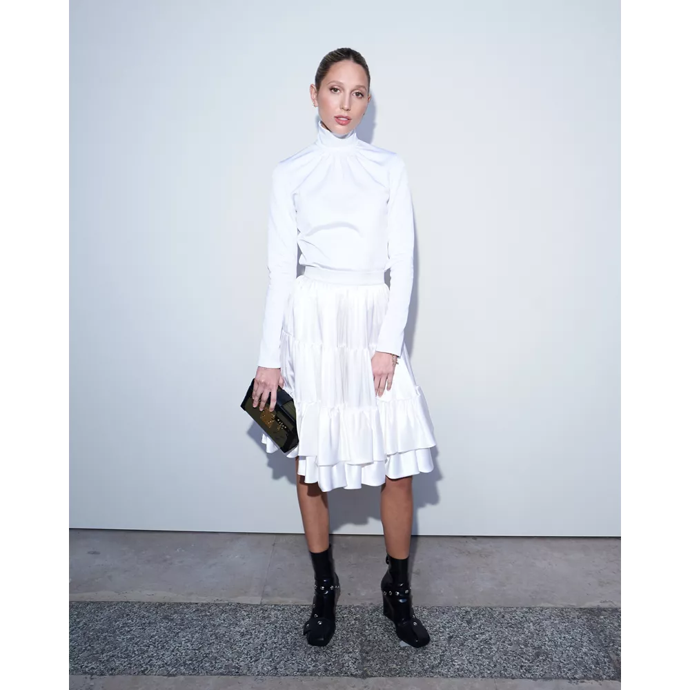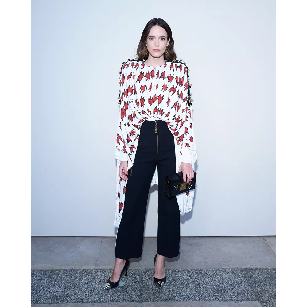 Στο front row της επίδειξης μόδας που πραγματοποιήθηκε στο Μουσείο Λούβρο παρευρέθηκαν και οι διάσημες φίλες του οίκου Louis Vuitton. Μούσες του σχεδιαστή, celebrities, διάσημα μοντέλα και influencers που ξεχωρίζουν με το στιλ τους έδωσαν το παρόν, κλέβοντας τις εντυπώσεις με τις στιλιστικές τους επιλογές, οι οποίες φυσικά έφεραν την υπογραφή του γαλλικού οίκου. Ανάμεσα στις καλεσμένες ήταν οι Jennifer Connelly, Regina King, Phoebe Dynevor, Ana de Armas, Catherine Deneuve, Isabelle Huppert, Cynthia Erivo, Gemma Chan, Natalia Vodianova, Emma Chamberlain, Maria Bakalova και Μαρία-Ολυμπία Γλίξμπουργκ.