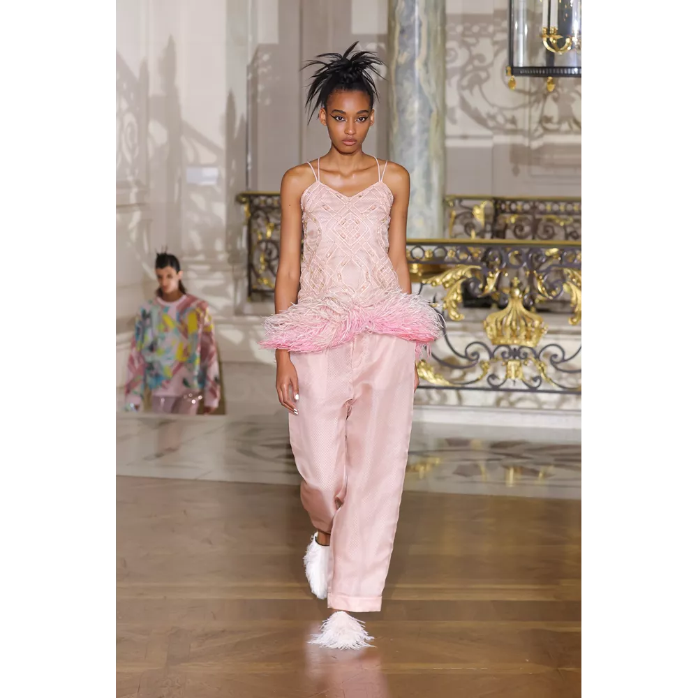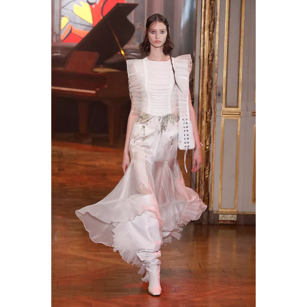 Είδαμε ακόμα: τη συλλογή της Miuccia Prada για τον οίκο Miu Miu, με πολλές αναφορές στη μόδα των '90s, τη συλλογή του Raf Simons για τον ομώνυμο οίκο που παρουσίασε για πρώτη φορά στο Παρίσι και στο επίκεντρο της οποίας βρίσκεται το genderless dressing και η ιδέα της "στολής", τη συλλογή του 24χρονου Charles de Vilmorin που ανέλαβε την καλλιτεχνική διεύθυνση του οίκου Rochas με τη προσδοκία να φέρει νέα πνοή, κι η οποία αποτυπώθηκε μέσα από έντονα μοτίβα, deconstruction και όγκους και τη συλλογή του Jonathan Anderson για τον οίκο Loewe με τους metallic κορσέδες, τις ιδιαίτερες σιλουέτες και τα φορέματα που μοιάζει να τα τραβά από μπροστά ένα αόρατο χέρι, και η οποία άνετα συναγωνίζεται συλλογές των Comme des Garçons ή του οίκου Schiaparelli.