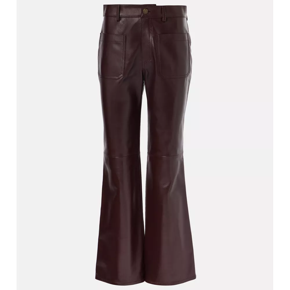 Τα δερμάτινα παντελόνια της άνοιξης έχουν επίσης φαρδιά γραμμή όπως η δερμάτινη παντελόνα του παριζιάνικου Nour Hammour, αλλά και το balloon παντελόνι από δέρμα σε μπορντό του Zara, ενώ εξίσου κολακευτικό είναι και το δερμάτινο flared παντελόνι της Chloé. Επίσης, σημειώστε και το άνετο δερμάτινο παντελόνι της συλλογής ST. AGNI σε ωραίο πράσινο χρώμα, που φέρνει την ανοιξιάτικη διάθεση στο στιλ.