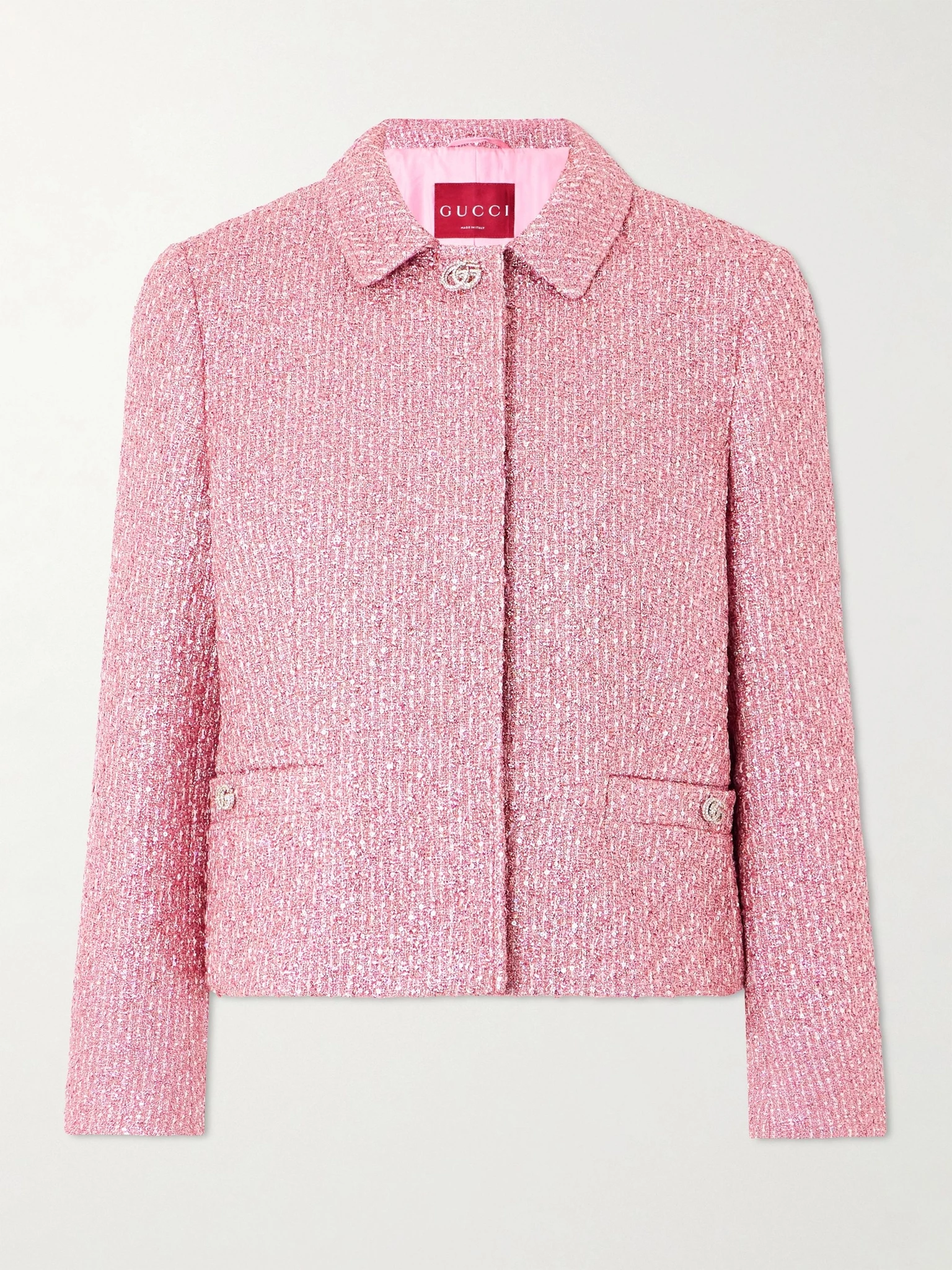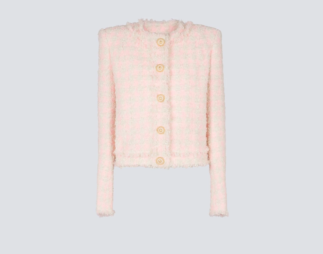 Ένας οίκος που φημίζεται για την ποικιλία του σε tweed jackets είναι ο Balmain και από τη συλλογή του ξεχωρίσαμε ένα tweed τζάκετ με κουμπιά στην απόχρωση που θα φορεθεί περισσότερο τη φετινή άνοιξη, το απαλό ροζ. Ένα boxy τζάκετ από τη συλλογή της Max Mara σε μάλλινο tweed διαθέτει τον casual χαρακτήρα που θα το κάνει ιδανικό ταίρι μ' ένα τζιν, ενώ ένα lamé-tweed τζάκετ με διακριτικά κρυσταλλάκια και πούλιες από τον Gucci, σε ροζ, και ένα cropped tweed τζάκετ με metallic checks από τον Versace προσφέρονται για διακριτική λάμψη μέσα στη μέρα- αλλά και για βραδινά looks με πρωταγωνιστή το denim bottom.