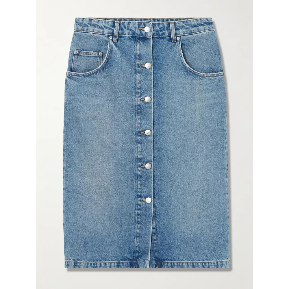 Μία φούστα από οργανικό denim από τη Stella McCartney υιοθετεί την κλασική σιλουέτα ίσια γραμμή - κουμπιά μπροστά και προσφέρεται για κομψά casual looks, μία μίντι φούστα σε σκούρο denim από τη συλλογή Pepe Jeans (που θα βρείτε στα attica) είναι ιδανική για μοντέρνα preppy looks, μία indigo denim φούστα με σκίσιμο από το Cos διακρίνεται από μία πολύ σύγχρονη ματιά στο σχέδιο και μπορεί να φορεθεί day-to-night, ενώ μία denim φούστα με flared τελείωμα από τη συλλογή Twinset (που φιλοξενούν τα πολυκαταστήματα notos) συνδυάζεται ωραία με ζακέτες και μπαλαρίνες.