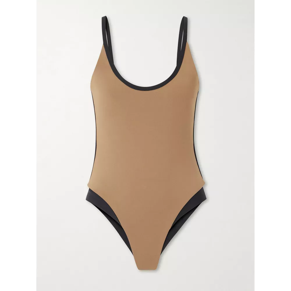 Μπορείτε, επίσης, να επενδύσετε σε μαγιό σε λευκό χρώμα που αποπνέει πολυτέλεια, όπως το στράπλες bustier ολόσωμο της συλλογής Eres, αλλά και σ' ένα μπικίνι σε ανοιχτό ροζ χρώμα, όπως αυτό από το brand OdysseyTen. Ένα χρώμα που αποπνέει διακριτική πολυτέλεια όταν συνδυάζεται με λιτές γραμμές είναι το χακί πράσινο: το two-tone μπικίνι του brand Faithfull όπως και το σουέτ εφέ ολόσωμο μαγιό της Sophie Deloudi υιοθετούν αυτή την απόχρωση και υπόσχονται chic κομψότητα στην παραλία. Την ίδια που θα σας εξασφαλίσουν και μαγιό στις αποχρώσεις του καφέ, όπως το μίνιμαλ μπικίνι του brand Jade Swim και το two-tone ολόσωμο μαγιό του Marysia.