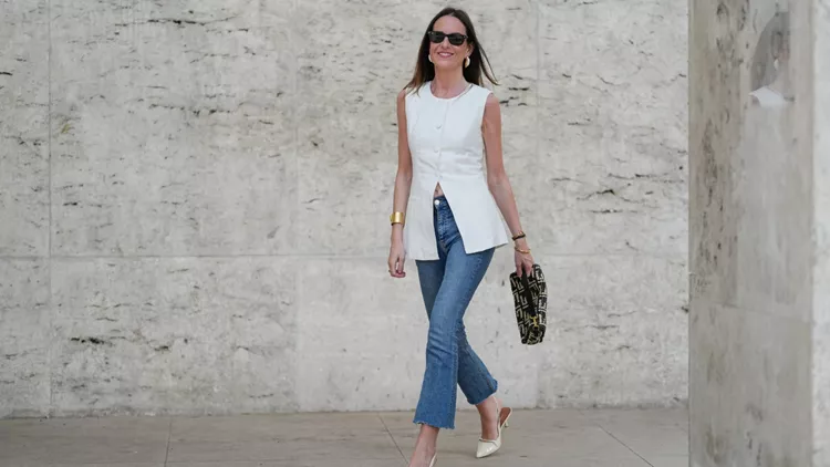 Τα γιλέκα είναι τα blazers του καλοκαιριού. Ξεκινήστε την εβδομάδα σας συνδυάζοντας ένα κομψό λευκό γιλέκο με τζιν παντελόνι και slingback γόβες για να πάτε στη δουλειά.