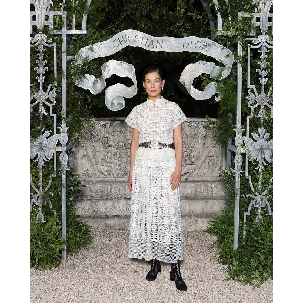 Στο front row του show Dior Cruise 2026 βρέθηκαν διάσημες ambassadors και φίλες του γαλλικού οίκου, όπως η Natalie Portman, η Camille Cottin, η Deva Cassel, η Beatrice Borromeo, η Rachel Brosnahan, η Rosamund Pike και πολλές άλλες. Η Portman, που εμφανίστηκε πρόσφατα στις Κάννες με δημιουργίες Christian Dior που εντυπωσίασαν, φόρεσε για το show ένα λευκό μεταξωτό τζάκετ πάνω από μία λευκή μεταξωτή μακριά φούστα από τη συλλογή Cruise 2026, η Cottin φόρεσε ένα λιτό λευκό μάξι φόρεμα από την ίδια συλλογή, η Cassel ένα λευκό πλισέ μεταξωτό φόρεμα του οίκου με αξεσουάρ Dior, ενώ η Borromeo ένα ασύμμετρο λευκό μεταξωτό φόρεμα Dior με αξεσουάρ Dior. Όλες έδειχναν εξαιρετικά αιθέριες και κέρδισαν τις εντυπώσεις ως ένα πολύ κομψό front row.