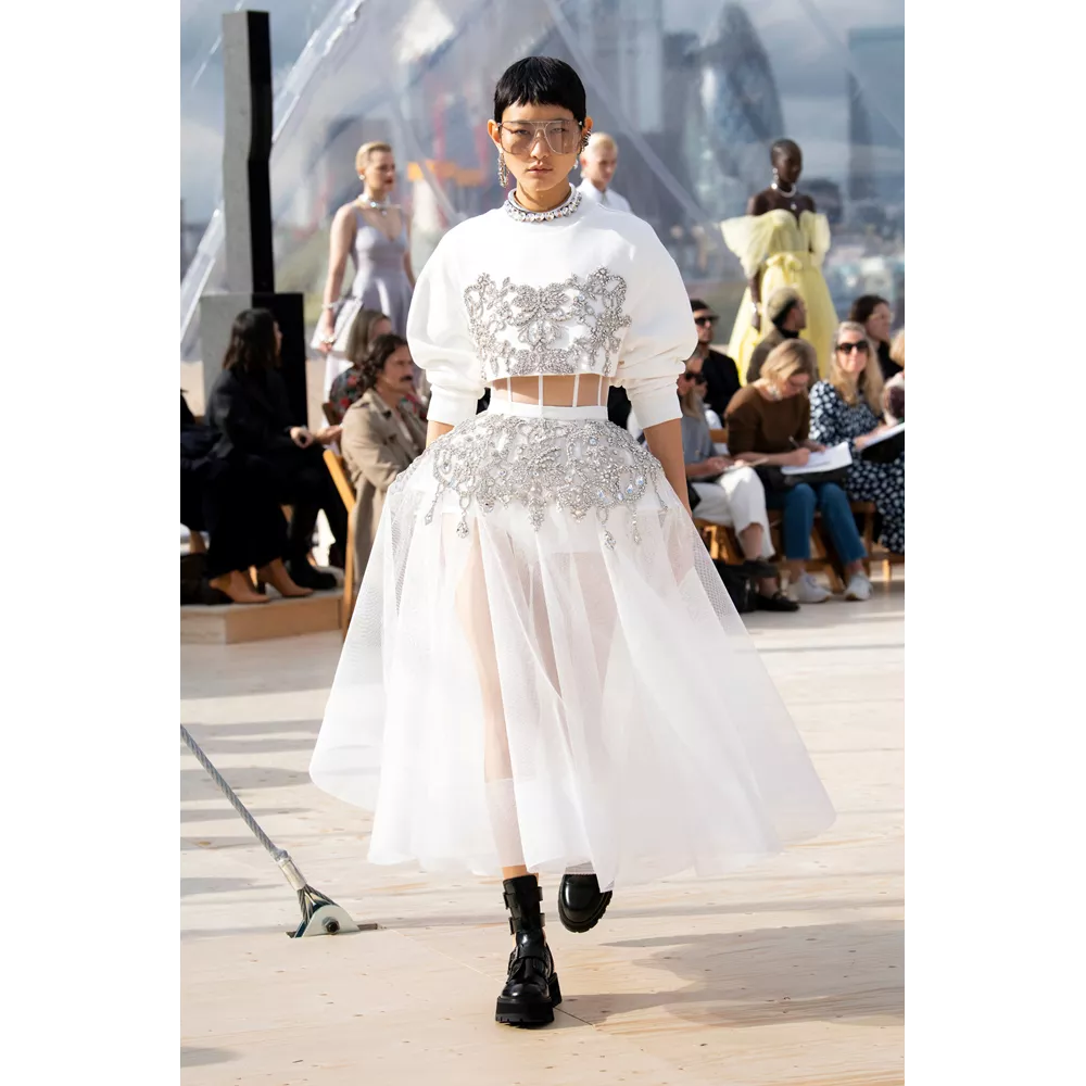 Μπορεί ο μήνας που φιλοξένησε τις fashion weeks για τις συλλογές Άνοιξη - Καλοκαίρι 2022 να τελείωσε, όχι όμως και τα fashion shows. Εκτός επίσημου calendar παρουσίασε τη συλλογή του Άνοιξη 2022 ο οίκος Alexander McQueen, ο οποίο όχι απλά επέστρεψε στα runways με φυσική παρουσία αλλά και στο Λονδίνο, όπου είχε να παρουσιάσει συλλογή από το 2016 [σ.σ. ο οίκος από τον Σεπτέμβριο του 2016 έως και το τελευταίο του προ- κόβιντ show, τον Σεπτέμβριο του 2019, παρουσίαζε τις συλλογές του στο Παρίσι και την εκεί εβδομάδα μόδας].